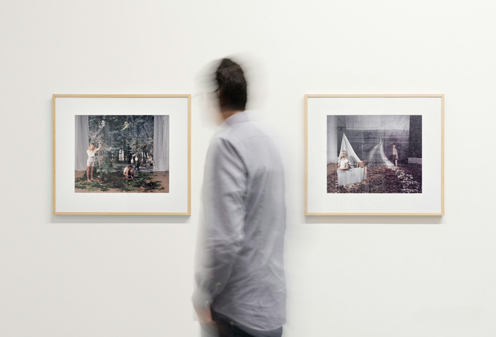 Noémie Goudals Arbeiten situieren sich an den unscharfen Grenzen zwischen natürlichen und künstlichen Landschaften und spielen mit der ambivalenten Rolle der Fotografie als ein gleichzeitig immersives und distanzierendes Werkzeug. Indem sie die Transparenzillusion des Mediums bricht, bringt die Künstlerin konstruierte Umgebungen und hybride Welten hervor, in denen Realität und Bild koexistieren. Ein Kind bewegt sich durch die Falten einer fotografischen Landschaft; Blätter verteilen sich auf dem Boden, bis ins gedruckte Bild hinein. Indem Goudals Fotografien die räumlichen Grenzen verschwimmen lassen, verwickeln sie uns in neue Realitäten und fordern uns dazu auf, in eine unentwegte Auseinandersetzung mit unserer Umgebung zu treten – eine Umgebung, in der wir stets unsicher sind, ob wir es nun mit repräsentierten und simulierten Objekten zu tun haben oder mit den tatsächlichen natürlichen Elementen.