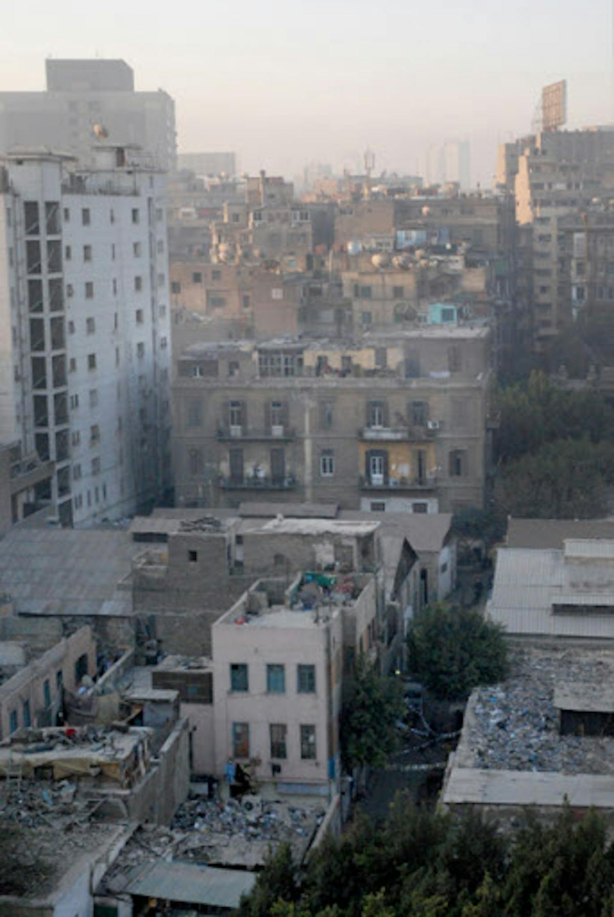 Die Werkgruppe Frühstücksgasse bezeichnet eine namenlose Gasse im Herzen Kairos. Vom oberen Stockwerk eines Wohnhauses aus beobachtet, entfaltet sich in 140 Fotografien ein Bild des angrenzenden Areals. Immer wieder erscheinen dieselben Gebäude, Dächer und Bäume, im Mittagslicht, bei Sonnenuntergang oder nachts im Widerschein elektrischer Beleuchtung. Eine Wiederholung, die unsere Wahrnehmung schärft. Leichte Verschiebungen von Perspektive, Tageszeit und Wetter lassen uns immer wieder neue Details wahrnehmen. Zugleich zeigt Daniela Keisers raumgreifende Installation Kairo als Stadt, die sich kaum bewegt und deren marode Büroetagen und Wohnhäuser einer vergangenen Moderne anzugehören scheinen.
