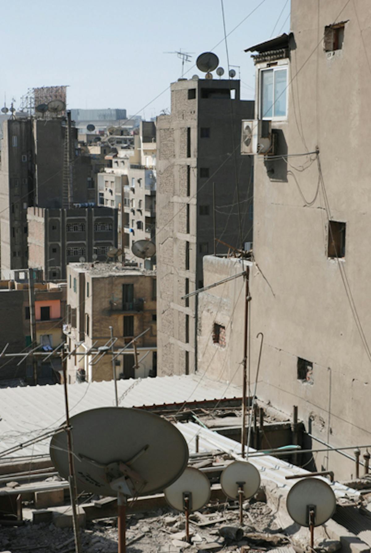 Die Werkgruppe Frühstücksgasse bezeichnet eine namenlose Gasse im Herzen Kairos. Vom oberen Stockwerk eines Wohnhauses aus beobachtet, entfaltet sich in 140 Fotografien ein Bild des angrenzenden Areals. Immer wieder erscheinen dieselben Gebäude, Dächer und Bäume, im Mittagslicht, bei Sonnenuntergang oder nachts im Widerschein elektrischer Beleuchtung. Eine Wiederholung, die unsere Wahrnehmung schärft. Leichte Verschiebungen von Perspektive, Tageszeit und Wetter lassen uns immer wieder neue Details wahrnehmen. Zugleich zeigt Daniela Keisers raumgreifende Installation Kairo als Stadt, die sich kaum bewegt und deren marode Büroetagen und Wohnhäuser einer vergangenen Moderne anzugehören scheinen.