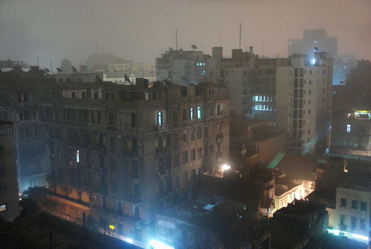 Die Werkgruppe Frühstücksgasse bezeichnet eine namenlose Gasse im Herzen Kairos. Vom oberen Stockwerk eines Wohnhauses aus beobachtet, entfaltet sich in 140 Fotografien ein Bild des angrenzenden Areals. Immer wieder erscheinen dieselben Gebäude, Dächer und Bäume, im Mittagslicht, bei Sonnenuntergang oder nachts im Widerschein elektrischer Beleuchtung. Eine Wiederholung, die unsere Wahrnehmung schärft. Leichte Verschiebungen von Perspektive, Tageszeit und Wetter lassen uns immer wieder neue Details wahrnehmen. Zugleich zeigt Daniela Keisers raumgreifende Installation Kairo als Stadt, die sich kaum bewegt und deren marode Büroetagen und Wohnhäuser einer vergangenen Moderne anzugehören scheinen.