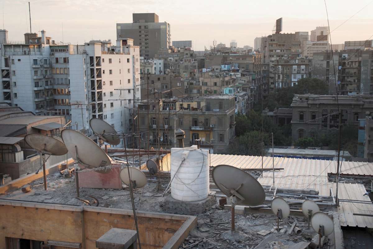 Die Werkgruppe Frühstücksgasse bezeichnet eine namenlose Gasse im Herzen Kairos. Vom oberen Stockwerk eines Wohnhauses aus beobachtet, entfaltet sich in 140 Fotografien ein Bild des angrenzenden Areals. Immer wieder erscheinen dieselben Gebäude, Dächer und Bäume, im Mittagslicht, bei Sonnenuntergang oder nachts im Widerschein elektrischer Beleuchtung. Eine Wiederholung, die unsere Wahrnehmung schärft. Leichte Verschiebungen von Perspektive, Tageszeit und Wetter lassen uns immer wieder neue Details wahrnehmen. Zugleich zeigt Daniela Keisers raumgreifende Installation Kairo als Stadt, die sich kaum bewegt und deren marode Büroetagen und Wohnhäuser einer vergangenen Moderne anzugehören scheinen.