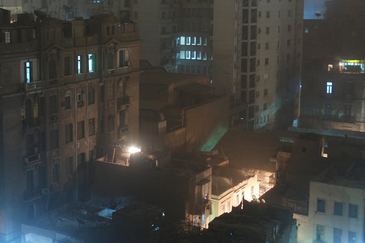 Die Werkgruppe Frühstücksgasse bezeichnet eine namenlose Gasse im Herzen Kairos. Vom oberen Stockwerk eines Wohnhauses aus beobachtet, entfaltet sich in 140 Fotografien ein Bild des angrenzenden Areals. Immer wieder erscheinen dieselben Gebäude, Dächer und Bäume, im Mittagslicht, bei Sonnenuntergang oder nachts im Widerschein elektrischer Beleuchtung. Eine Wiederholung, die unsere Wahrnehmung schärft. Leichte Verschiebungen von Perspektive, Tageszeit und Wetter lassen uns immer wieder neue Details wahrnehmen. Zugleich zeigt Daniela Keisers raumgreifende Installation Kairo als Stadt, die sich kaum bewegt und deren marode Büroetagen und Wohnhäuser einer vergangenen Moderne anzugehören scheinen.