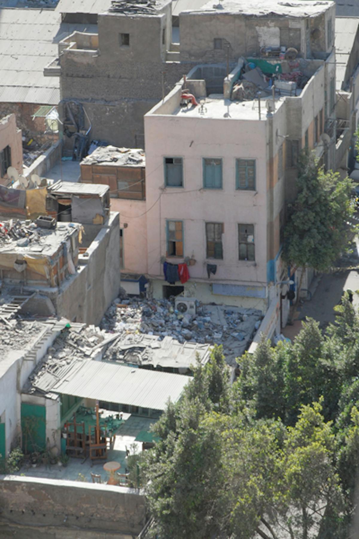 Die Werkgruppe Frühstücksgasse bezeichnet eine namenlose Gasse im Herzen Kairos. Vom oberen Stockwerk eines Wohnhauses aus beobachtet, entfaltet sich in 140 Fotografien ein Bild des angrenzenden Areals. Immer wieder erscheinen dieselben Gebäude, Dächer und Bäume, im Mittagslicht, bei Sonnenuntergang oder nachts im Widerschein elektrischer Beleuchtung. Eine Wiederholung, die unsere Wahrnehmung schärft. Leichte Verschiebungen von Perspektive, Tageszeit und Wetter lassen uns immer wieder neue Details wahrnehmen. Zugleich zeigt Daniela Keisers raumgreifende Installation Kairo als Stadt, die sich kaum bewegt und deren marode Büroetagen und Wohnhäuser einer vergangenen Moderne anzugehören scheinen.