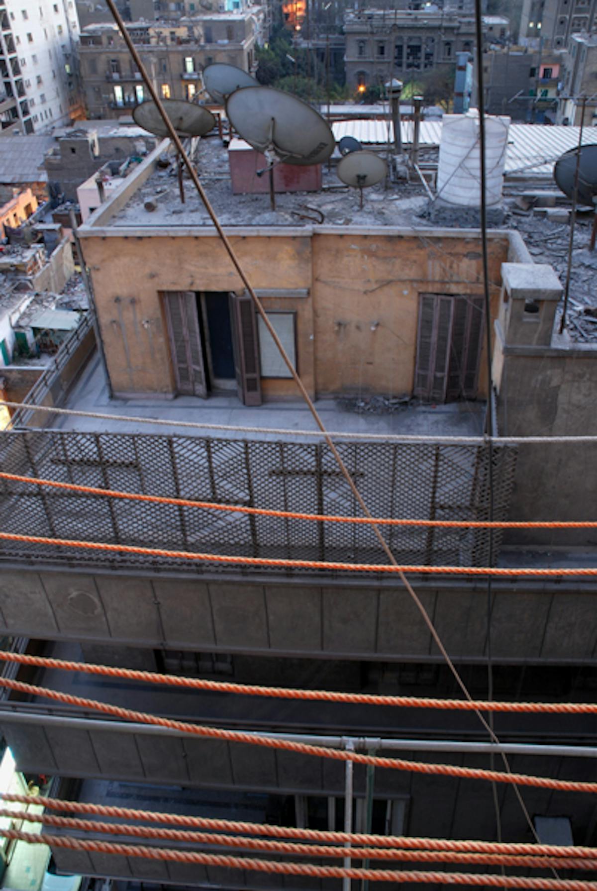 Die Werkgruppe Frühstücksgasse bezeichnet eine namenlose Gasse im Herzen Kairos. Vom oberen Stockwerk eines Wohnhauses aus beobachtet, entfaltet sich in 140 Fotografien ein Bild des angrenzenden Areals. Immer wieder erscheinen dieselben Gebäude, Dächer und Bäume, im Mittagslicht, bei Sonnenuntergang oder nachts im Widerschein elektrischer Beleuchtung. Eine Wiederholung, die unsere Wahrnehmung schärft. Leichte Verschiebungen von Perspektive, Tageszeit und Wetter lassen uns immer wieder neue Details wahrnehmen. Zugleich zeigt Daniela Keisers raumgreifende Installation Kairo als Stadt, die sich kaum bewegt und deren marode Büroetagen und Wohnhäuser einer vergangenen Moderne anzugehören scheinen.