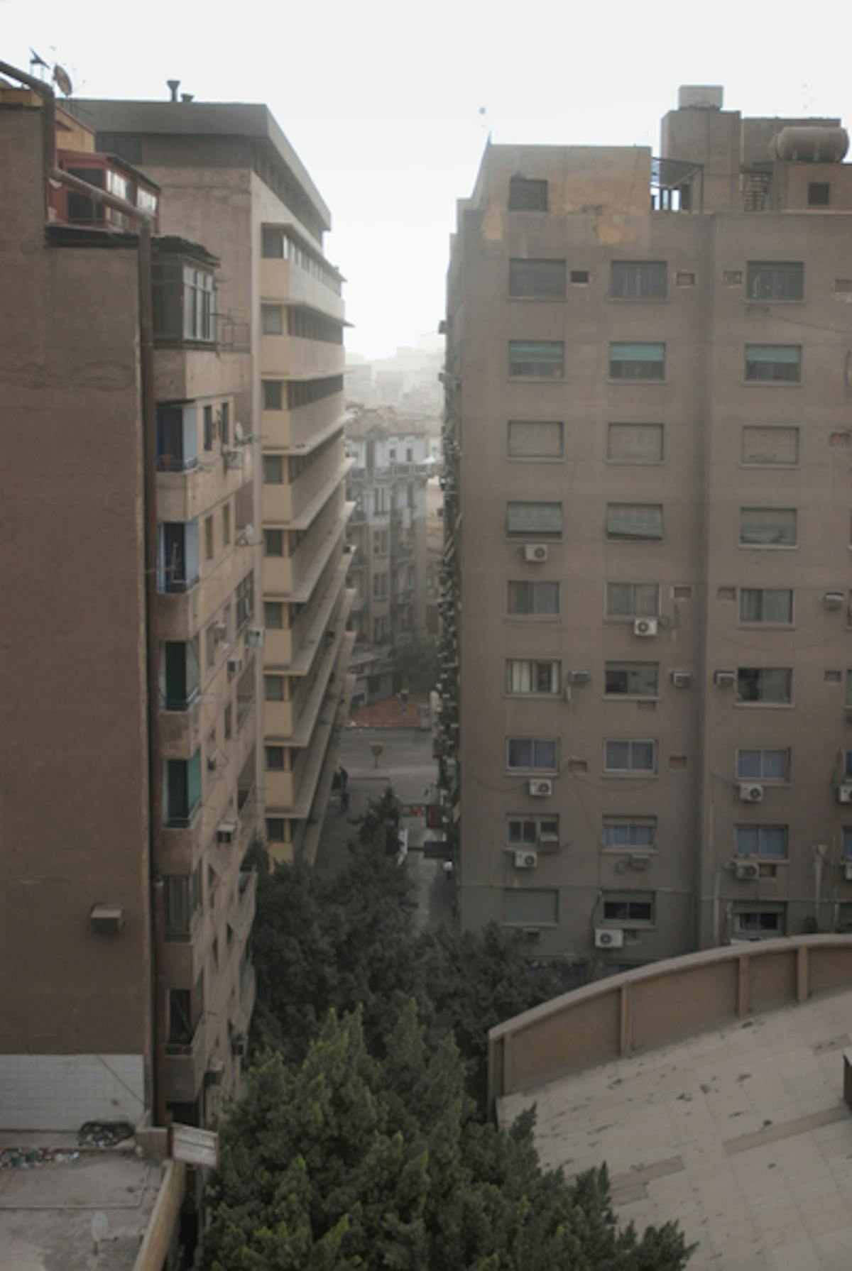 Die Werkgruppe Frühstücksgasse bezeichnet eine namenlose Gasse im Herzen Kairos. Vom oberen Stockwerk eines Wohnhauses aus beobachtet, entfaltet sich in 140 Fotografien ein Bild des angrenzenden Areals. Immer wieder erscheinen dieselben Gebäude, Dächer und Bäume, im Mittagslicht, bei Sonnenuntergang oder nachts im Widerschein elektrischer Beleuchtung. Eine Wiederholung, die unsere Wahrnehmung schärft. Leichte Verschiebungen von Perspektive, Tageszeit und Wetter lassen uns immer wieder neue Details wahrnehmen. Zugleich zeigt Daniela Keisers raumgreifende Installation Kairo als Stadt, die sich kaum bewegt und deren marode Büroetagen und Wohnhäuser einer vergangenen Moderne anzugehören scheinen.