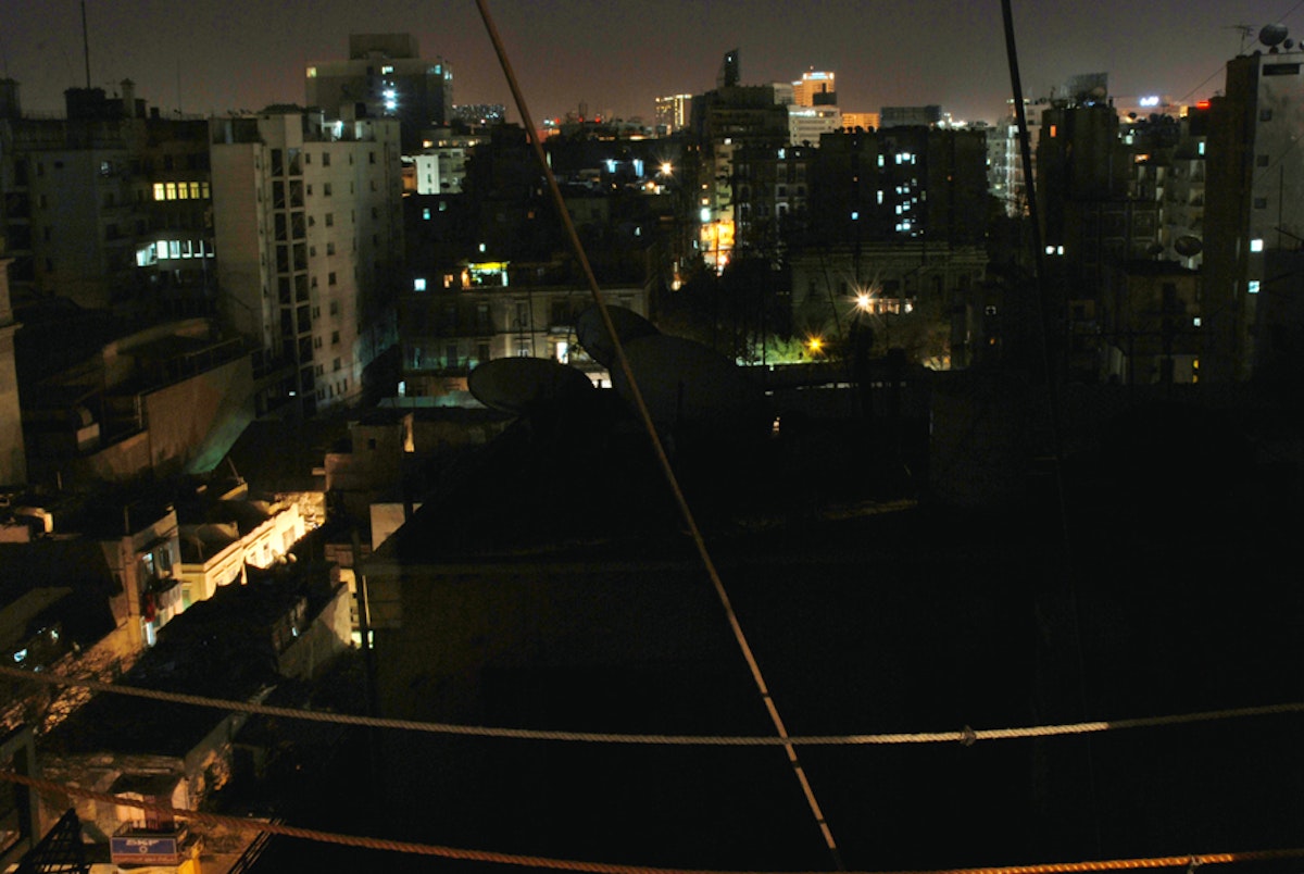 Die Werkgruppe Frühstücksgasse bezeichnet eine namenlose Gasse im Herzen Kairos. Vom oberen Stockwerk eines Wohnhauses aus beobachtet, entfaltet sich in 140 Fotografien ein Bild des angrenzenden Areals. Immer wieder erscheinen dieselben Gebäude, Dächer und Bäume, im Mittagslicht, bei Sonnenuntergang oder nachts im Widerschein elektrischer Beleuchtung. Eine Wiederholung, die unsere Wahrnehmung schärft. Leichte Verschiebungen von Perspektive, Tageszeit und Wetter lassen uns immer wieder neue Details wahrnehmen. Zugleich zeigt Daniela Keisers raumgreifende Installation Kairo als Stadt, die sich kaum bewegt und deren marode Büroetagen und Wohnhäuser einer vergangenen Moderne anzugehören scheinen.