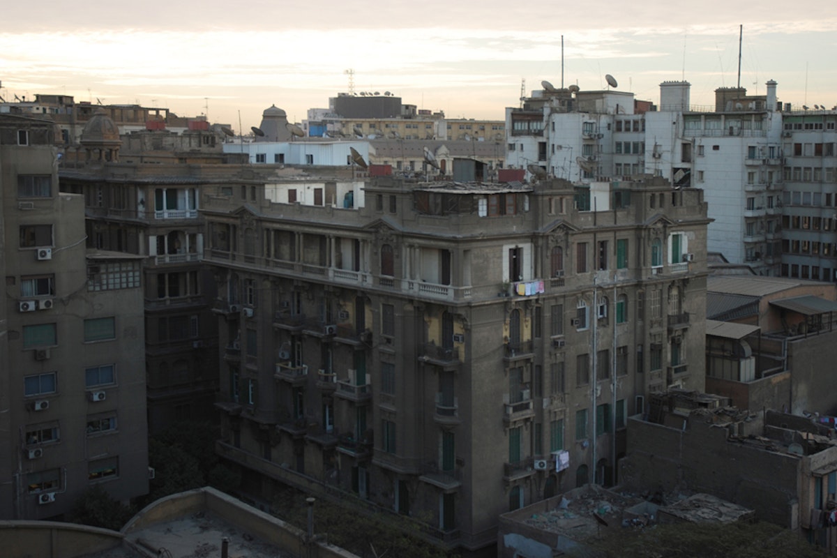 Die Werkgruppe Frühstücksgasse bezeichnet eine namenlose Gasse im Herzen Kairos. Vom oberen Stockwerk eines Wohnhauses aus beobachtet, entfaltet sich in 140 Fotografien ein Bild des angrenzenden Areals. Immer wieder erscheinen dieselben Gebäude, Dächer und Bäume, im Mittagslicht, bei Sonnenuntergang oder nachts im Widerschein elektrischer Beleuchtung. Eine Wiederholung, die unsere Wahrnehmung schärft. Leichte Verschiebungen von Perspektive, Tageszeit und Wetter lassen uns immer wieder neue Details wahrnehmen. Zugleich zeigt Daniela Keisers raumgreifende Installation Kairo als Stadt, die sich kaum bewegt und deren marode Büroetagen und Wohnhäuser einer vergangenen Moderne anzugehören scheinen.