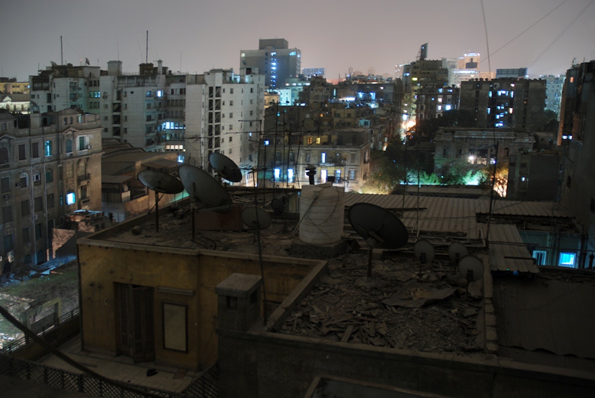 Die Werkgruppe Frühstücksgasse bezeichnet eine namenlose Gasse im Herzen Kairos. Vom oberen Stockwerk eines Wohnhauses aus beobachtet, entfaltet sich in 140 Fotografien ein Bild des angrenzenden Areals. Immer wieder erscheinen dieselben Gebäude, Dächer und Bäume, im Mittagslicht, bei Sonnenuntergang oder nachts im Widerschein elektrischer Beleuchtung. Eine Wiederholung, die unsere Wahrnehmung schärft. Leichte Verschiebungen von Perspektive, Tageszeit und Wetter lassen uns immer wieder neue Details wahrnehmen. Zugleich zeigt Daniela Keisers raumgreifende Installation Kairo als Stadt, die sich kaum bewegt und deren marode Büroetagen und Wohnhäuser einer vergangenen Moderne anzugehören scheinen.