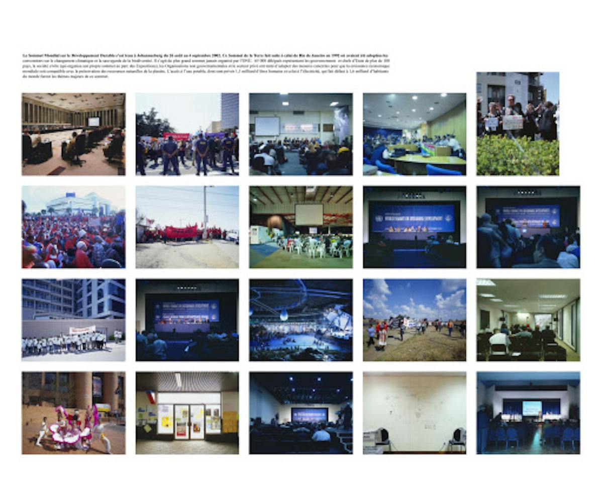 Das grosse Thema Serralongues ist die pathosfreie Bebilderung von alternativen Gipfeltreffen, Arbeitskämpfen und anderen politischen Handlungen mit dem Anspruch, dabei auch die eigene Motivation zu reflektieren. Den „Earth Summit“ dokumentiert er als Wechsel zwischen Drinnen und Draussen, zwischen gleichförmigen Veranstaltungen im Neonlicht und Strassenprotesten mit bunten Transparenten. Auf dem Spiel steht die Verschiebung von Kräfteverhältnissen („Rapport de forces“ heisst auch eine Publikation von Serralongue) und wie diese in engagierten Bildern eingefangen werden kann.