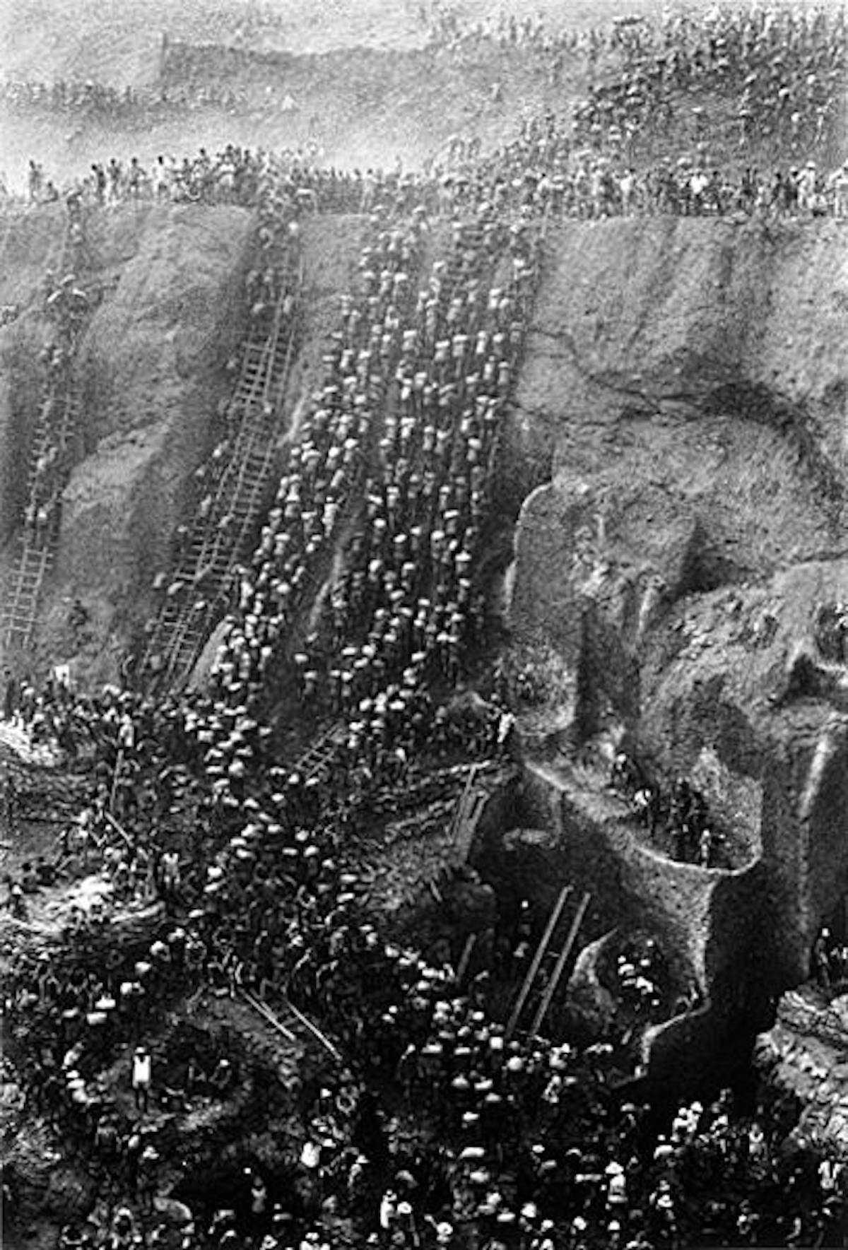 Hinter einer Welt, die auf Schnelligkeit und Produktivität ausgelegt ist, droht der Mensch und mit ihm seine körperliche Leistungsfähigkeit beinahe zu verschwinden. Salgado widmet sich dem aussterbenden Phänomen der Handarbeit, die heutzutage fast nur noch in Drittweltländern aufzutreten scheint. Wie Ameisen tummeln sich Menschen, die nicht mehr auseinander zu dividieren sind, um kraft ihrer Körper Leistung zu erbringen. Im Zuge der Globalisierung geraten solche Arbeitsweisen ins Hintertreffen und scheinen verbannt an Orte, für die der Blick und das Bewusstsein nicht ausreichend geschärft sind. Salgado macht sich als Archäologe ans Werk, der das im Verschwinden Begriffene zu konservieren sucht.