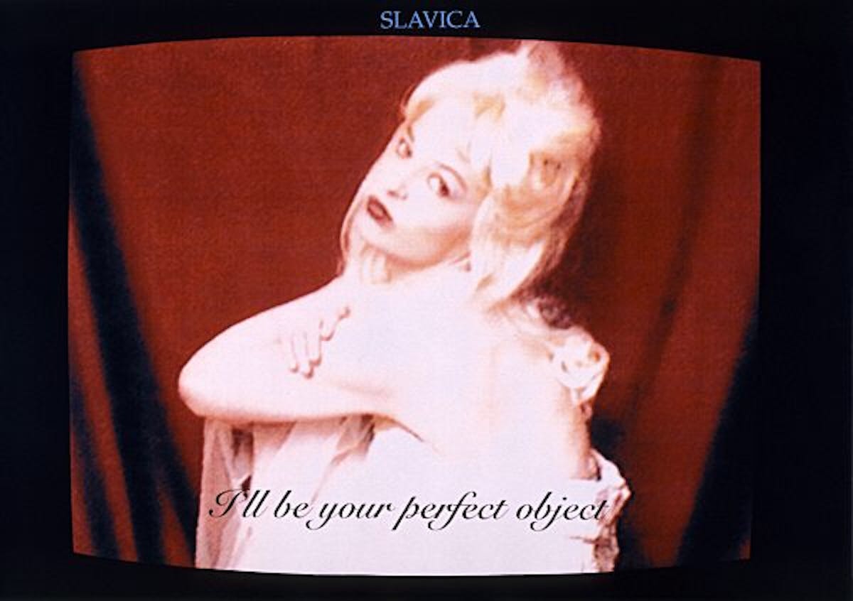 Die Leuchtkästen von Slavica Perkovic wurden ursprünglich in der Dirty Windows Gallery, einer Ladenpassage in Berlin, präsentiert. Im öffentlichen Raum erregten die Aufnahmen einer jungen, verkleideten Frau widersprüchliche Reaktionen. In Text und Bild gibt sich Slavica gleich zweimal als Objekt aus und behält gerade durch diese Form der Zurschaustellung die Kontrolle über die Wahrnehmung ihrer Person.