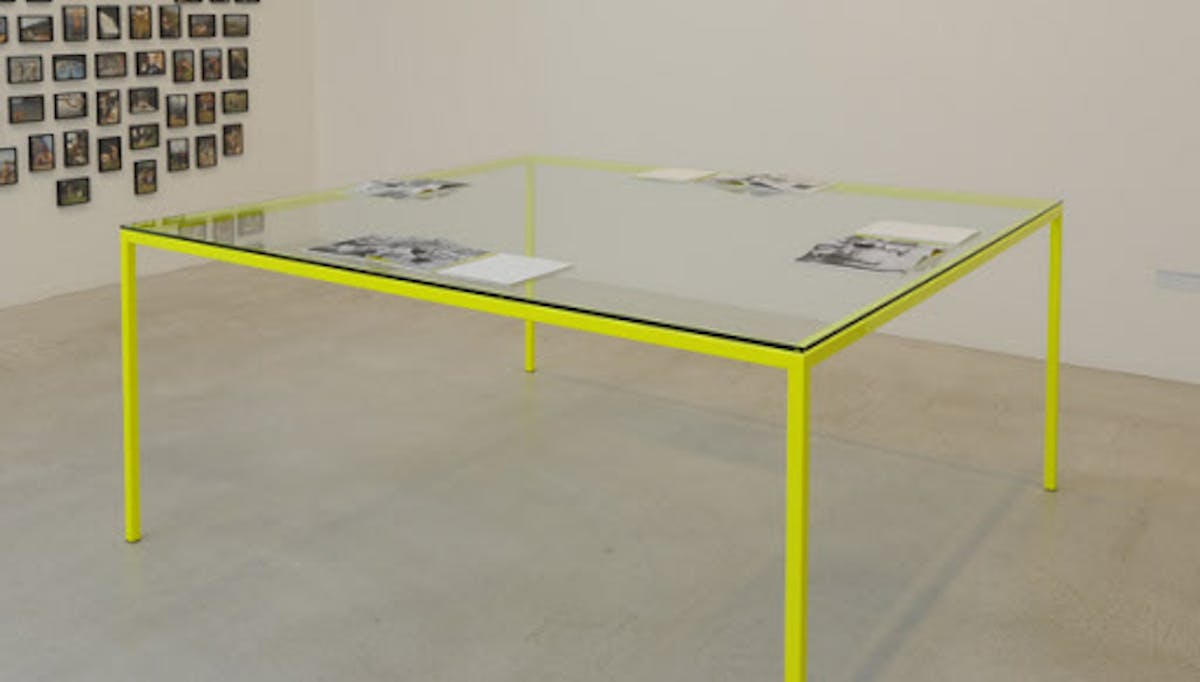 Tisch mit sieben Publikationen, 90 x 200 x 200 cm