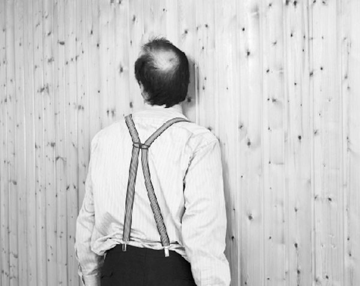 Herbert Weber ironisiert lineares Denken und thematisiert es in seinem gleichnamigen Bild als verqueres, holziges, gequältes Denken: Nur der Zug der elastischen Hosenträger scheint noch zu funktionieren, sonst wartet die Figur offenbar vergeblich darauf, dass sich eines der Astlöcher, welche die Bretterwand übersäen, irgendwann öffnen wird und Weit- und Einsicht erlaubt. Webers choreographierte Kabinettstücke – meist in „freier“ Natur und mit sich selbst als anständig gekleidetem, korrekt frisiertem Protagonisten realisiert – stellen Themen des heutigen Alltags und kleinphilosophische Fragen dar und ironisieren sie. Mit Leichtigkeit wird zwischen häufig schwarz-weissen Szenen und den Titeln, dem unterlegten Text, eine humorvolle Distanz aufgebaut.