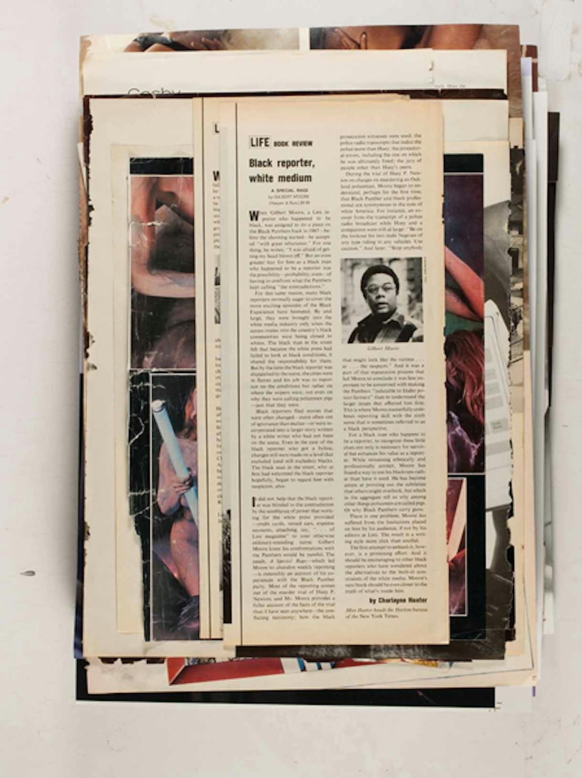 Der New Yorker Konzeptkünstler Leigh Ledare dokumentiert in seinem Projekt Ephemeras, das innerhalb seines Werks Double Bind (2010) entstanden ist, den Zeitgeist der 1960/70er Jahre bis heute. Es ist sozusagen sein eigenes Archiv, eine Serie von Bildern, die Ledare über eine lange Zeitspanne hinweg aus Magazinen und anderen Druckmaterialien herausgerissen hat. Die insgesamt 480 Seiten wurden in sechs Stapeln mit je 80 Seiten reproduziert. Die einzelnen Bilder scheinen keine Ordnung und keinen Zusammenhang zu haben. Es handelt sich hauptsächlich um Modebilder, Anzeigen, Auszüge aus Reportagen sowie pornografische Inhalte. So erscheint das Werk wie eine mehrschichtige Collage, bei der beispielsweise der Schnipsel einer Werbung für Kinderspielsachen einem pornografisches Bild aus den 1970 Jahren folgt. Ledare, der lange als Assistent von Larry Clark gearbeitet hat, ist eigentlich bekannt geworden durch sein Projekt Pretend You’re Actually Alive (2008) – eine kontroverse Serie zur ödipalen Beziehung mit seiner Mutter.