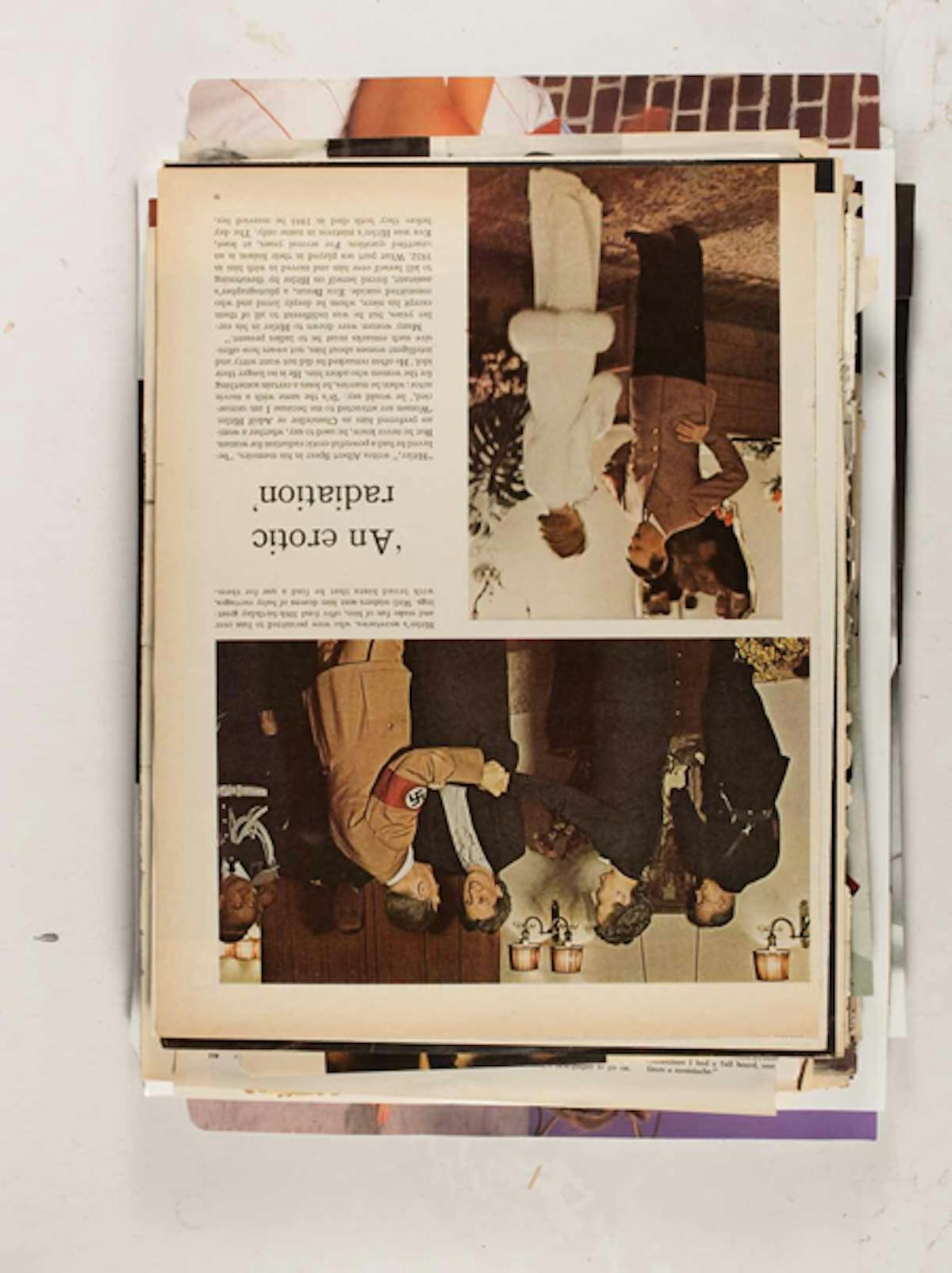 Der New Yorker Konzeptkünstler Leigh Ledare dokumentiert in seinem Projekt Ephemeras, das innerhalb seines Werks Double Bind (2010) entstanden ist, den Zeitgeist der 1960/70er Jahre bis heute. Es ist sozusagen sein eigenes Archiv, eine Serie von Bildern, die Ledare über eine lange Zeitspanne hinweg aus Magazinen und anderen Druckmaterialien herausgerissen hat. Die insgesamt 480 Seiten wurden in sechs Stapeln mit je 80 Seiten reproduziert. Die einzelnen Bilder scheinen keine Ordnung und keinen Zusammenhang zu haben. Es handelt sich hauptsächlich um Modebilder, Anzeigen, Auszüge aus Reportagen sowie pornografische Inhalte. So erscheint das Werk wie eine mehrschichtige Collage, bei der beispielsweise der Schnipsel einer Werbung für Kinderspielsachen einem pornografisches Bild aus den 1970 Jahren folgt. Ledare, der lange als Assistent von Larry Clark gearbeitet hat, ist eigentlich bekannt geworden durch sein Projekt Pretend You’re Actually Alive (2008) – eine kontroverse Serie zur ödipalen Beziehung mit seiner Mutter.
