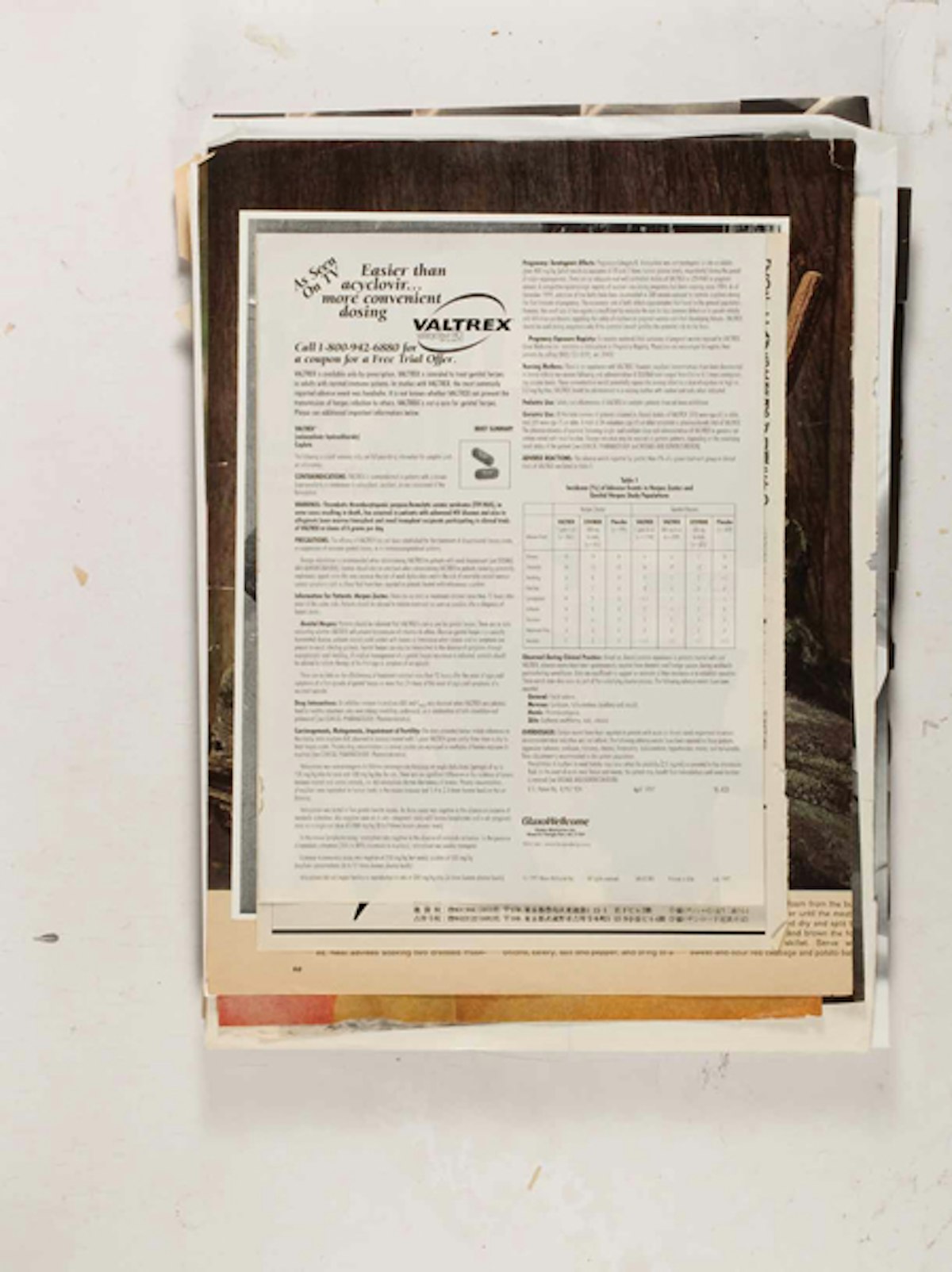 Der New Yorker Konzeptkünstler Leigh Ledare dokumentiert in seinem Projekt Ephemeras, das innerhalb seines Werks Double Bind (2010) entstanden ist, den Zeitgeist der 1960/70er Jahre bis heute. Es ist sozusagen sein eigenes Archiv, eine Serie von Bildern, die Ledare über eine lange Zeitspanne hinweg aus Magazinen und anderen Druckmaterialien herausgerissen hat. Die insgesamt 480 Seiten wurden in sechs Stapeln mit je 80 Seiten reproduziert. Die einzelnen Bilder scheinen keine Ordnung und keinen Zusammenhang zu haben. Es handelt sich hauptsächlich um Modebilder, Anzeigen, Auszüge aus Reportagen sowie pornografische Inhalte. So erscheint das Werk wie eine mehrschichtige Collage, bei der beispielsweise der Schnipsel einer Werbung für Kinderspielsachen einem pornografisches Bild aus den 1970 Jahren folgt. Ledare, der lange als Assistent von Larry Clark gearbeitet hat, ist eigentlich bekannt geworden durch sein Projekt Pretend You’re Actually Alive (2008) – eine kontroverse Serie zur ödipalen Beziehung mit seiner Mutter.
