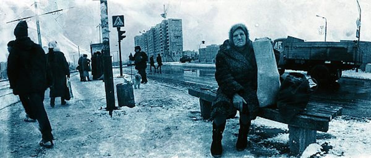 Im Zuge der politischen Öffnung nach dem Fall des eisernen Vorhangs wurde das Werk von Boris Mikhailov Mitte der 1990er Jahre erstmals im Westen entdeckt. Waren seine Fotografien in der UdSSR meist nur in kleinen privaten Ausstellungen zu sehen, erlangte Mikhailov spätestens mit der gleichzeitigen Publikation von By the Ground (1991) und At Dusk (1993) zuerst internationale und erst danach nationale Anerkennung. Im Strudel der postkommunistischen Realitäten verfallen die Menschen in Mikhailovs Bildern in bleischwere Agonie. So auch in Salt Lake (1986), einem aus unserer Sicht unwirtlichen Erholungsort in der Ukraine.