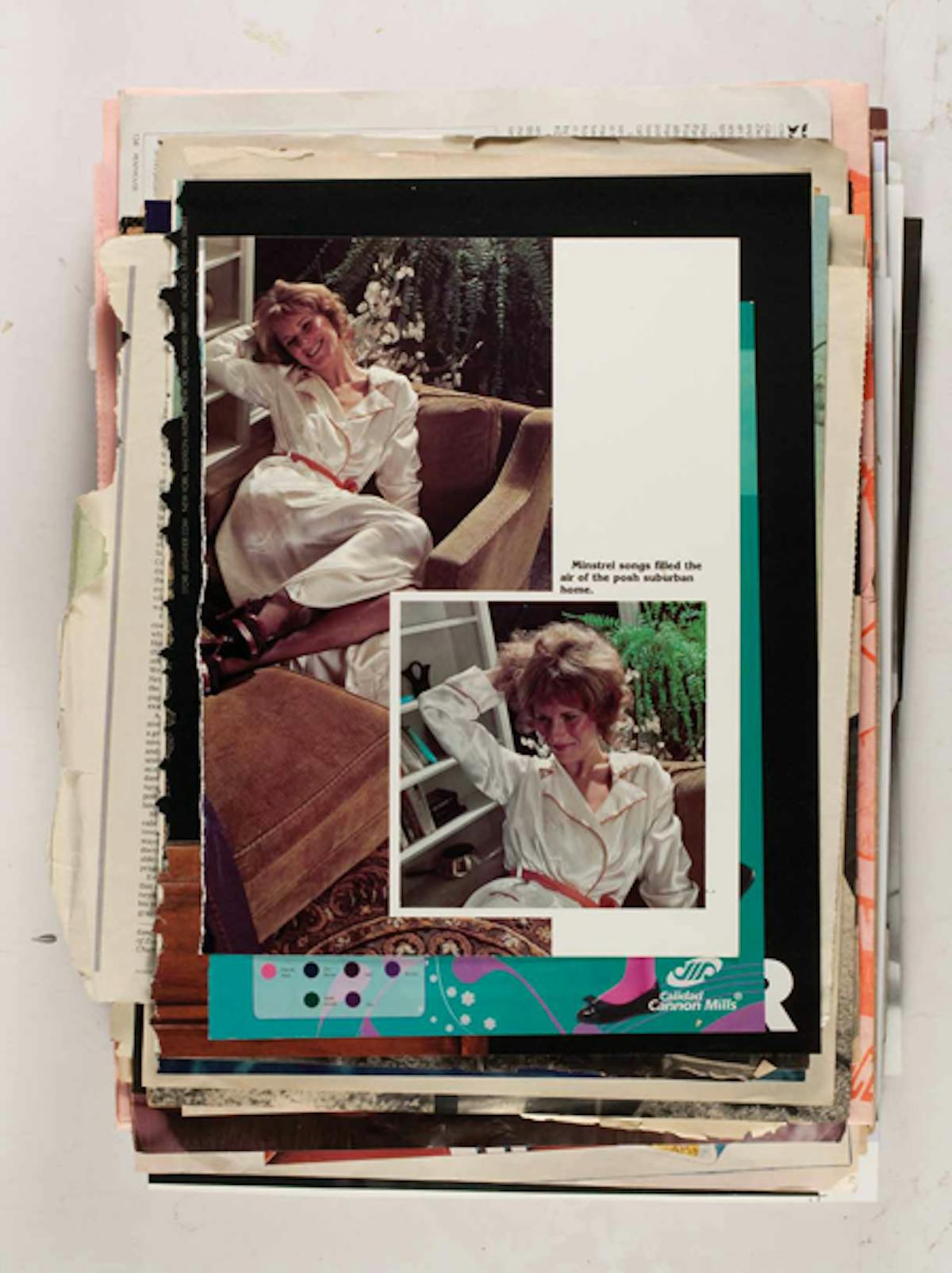 Der New Yorker Konzeptkünstler Leigh Ledare dokumentiert in seinem Projekt Ephemeras, das innerhalb seines Werks Double Bind (2010) entstanden ist, den Zeitgeist der 1960/70er Jahre bis heute. Es ist sozusagen sein eigenes Archiv, eine Serie von Bildern, die Ledare über eine lange Zeitspanne hinweg aus Magazinen und anderen Druckmaterialien herausgerissen hat. Die insgesamt 480 Seiten wurden in sechs Stapeln mit je 80 Seiten reproduziert. Die einzelnen Bilder scheinen keine Ordnung und keinen Zusammenhang zu haben. Es handelt sich hauptsächlich um Modebilder, Anzeigen, Auszüge aus Reportagen sowie pornografische Inhalte. So erscheint das Werk wie eine mehrschichtige Collage, bei der beispielsweise der Schnipsel einer Werbung für Kinderspielsachen einem pornografisches Bild aus den 1970 Jahren folgt. Ledare, der lange als Assistent von Larry Clark gearbeitet hat, ist eigentlich bekannt geworden durch sein Projekt Pretend You’re Actually Alive (2008) – eine kontroverse Serie zur ödipalen Beziehung mit seiner Mutter.