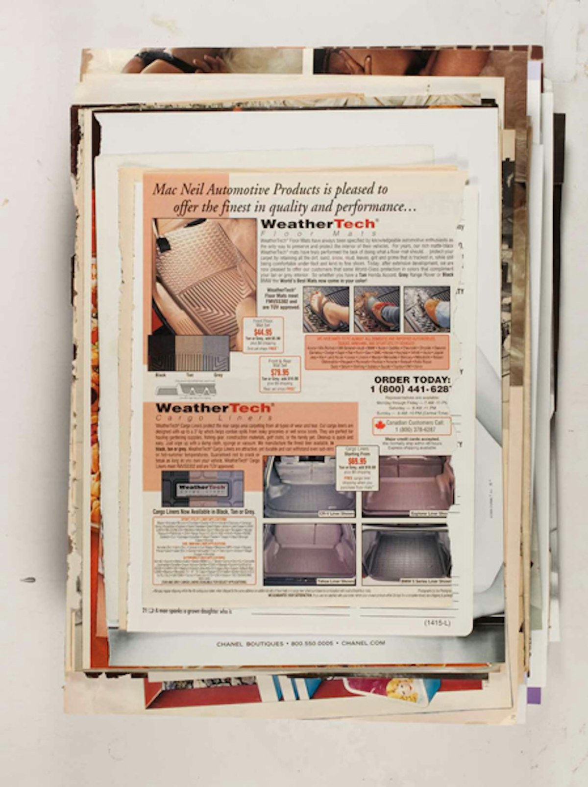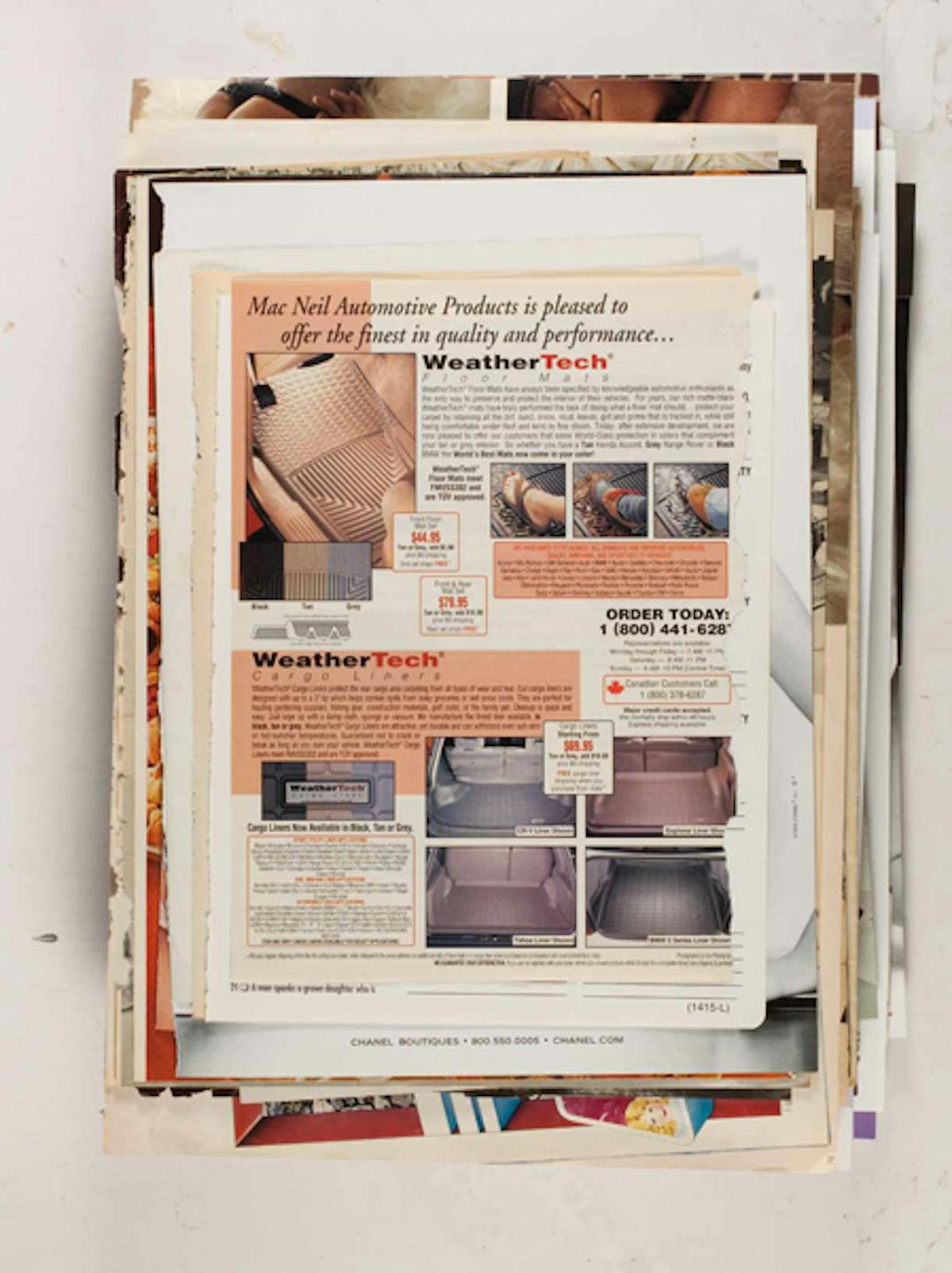 Der New Yorker Konzeptkünstler Leigh Ledare dokumentiert in seinem Projekt Ephemeras, das innerhalb seines Werks Double Bind (2010) entstanden ist, den Zeitgeist der 1960/70er Jahre bis heute. Es ist sozusagen sein eigenes Archiv, eine Serie von Bildern, die Ledare über eine lange Zeitspanne hinweg aus Magazinen und anderen Druckmaterialien herausgerissen hat. Die insgesamt 480 Seiten wurden in sechs Stapeln mit je 80 Seiten reproduziert. Die einzelnen Bilder scheinen keine Ordnung und keinen Zusammenhang zu haben. Es handelt sich hauptsächlich um Modebilder, Anzeigen, Auszüge aus Reportagen sowie pornografische Inhalte. So erscheint das Werk wie eine mehrschichtige Collage, bei der beispielsweise der Schnipsel einer Werbung für Kinderspielsachen einem pornografisches Bild aus den 1970 Jahren folgt. Ledare, der lange als Assistent von Larry Clark gearbeitet hat, ist eigentlich bekannt geworden durch sein Projekt Pretend You’re Actually Alive (2008) – eine kontroverse Serie zur ödipalen Beziehung mit seiner Mutter.