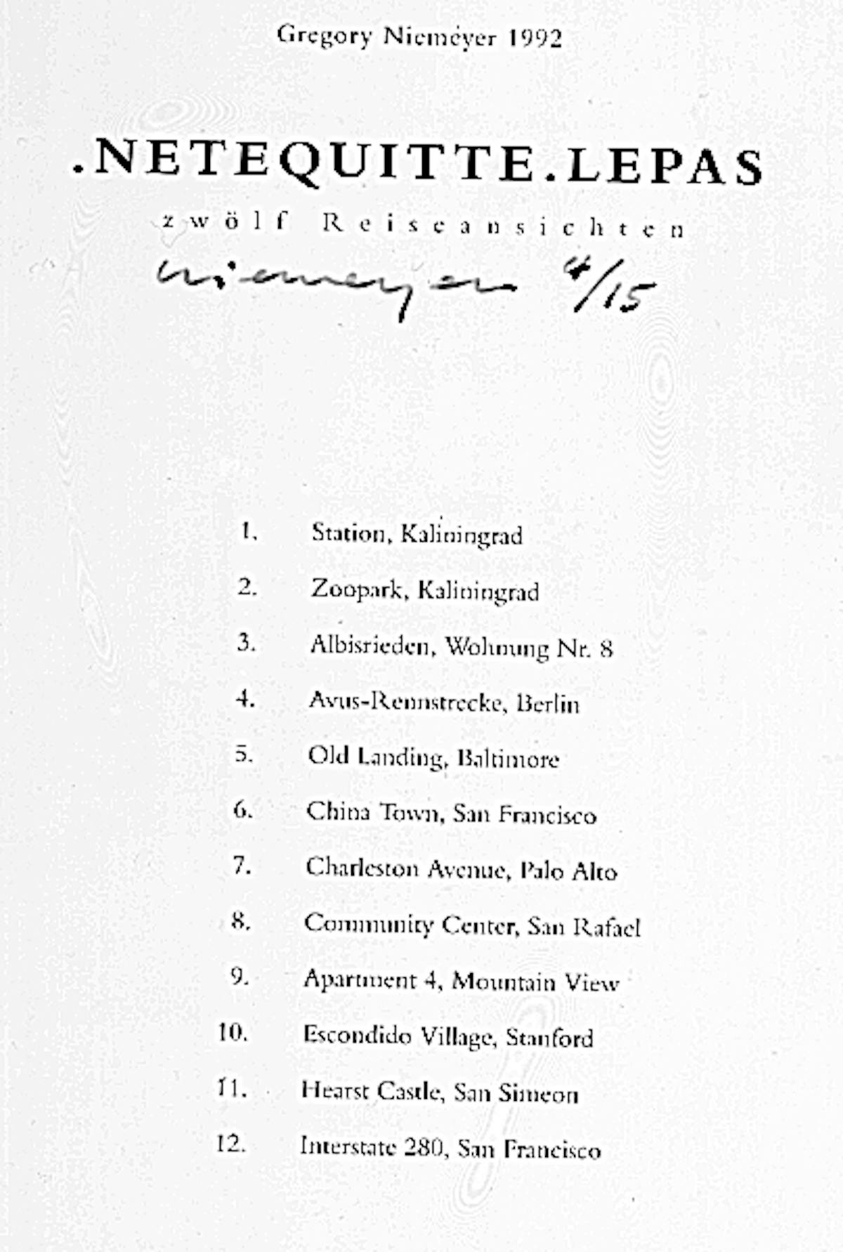 Portfolio: Ne te quitte. le pas 1992, Zwölf Reiseansichten. (Dass Dich der Schritt nicht verlasse)