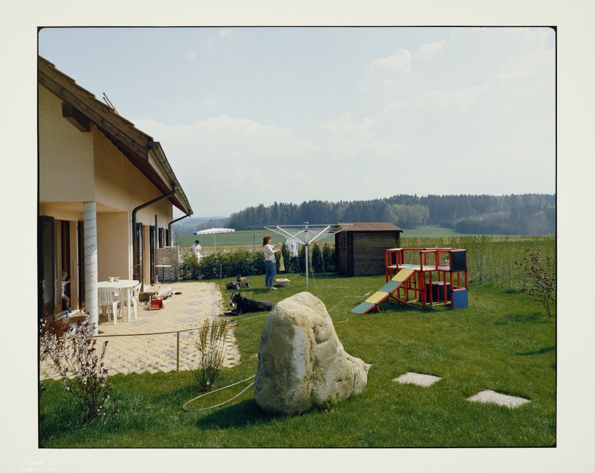 Der Genfer Fotograf Nicolas Faure ist eine Art «neuer Topograph» der aktuellen Schweizer Landschaft und ihrer Fotografie. Seine Porträts offenbaren das doppelte Gesicht einer neuen, wandelbaren und offenen Schweiz. In Citizens of the World – Meyrin (1995) porträtiert Faure den Genfer Vorort Meyrin als multikulturellen Schmelztiegel am Rand der wuchernden Grossstadt. Hier wohnen Familien aus über hundert Ländern. Faure zeigt diese internationalen Wanderarbeiter_innen ganz klassisch als beschauliche Familiengruppen in ihren schweizerisch angehauchten Wohnzimmern mit exotischen Extras.