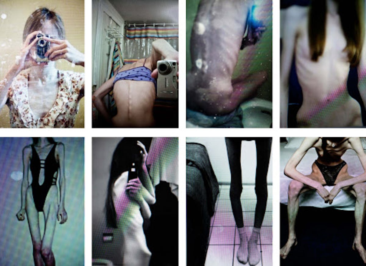 Thinspiration Mosaic ist eine Serie von Porträts junger, magersüchtiger Mädchen, die der Pro-Ana Szene angehören. Pro-Ana Gruppen sind Online-Communitys, welche die Anorexie zum Lebensstil erklären und Essstörungen propagieren, indem sie den ausgemergelten weiblichen Körper glorifizieren. Laia Abril hat Amateur-Selbstporträts, die Tausende von Pro Ana-Anhängerinnen auf Blogs und Webseiten teilen, fotografisch festgehalten und damit die visuelle Sprache dieser Szene eingefangen. Im Akt des Abfotografierens verwandelt die Künstlerin die Körper der Mädchen in eine abstrakte Landschaft von Zwang und Zerstörung. Jeglicher Individualität beraubt, werden sie zu einem schockierenden Zeugnis unserer von Kontrolle und Selbstoptimierung besessenen Gesellschaft. Als Teil einer grösseren thematischen Untersuchung wirft Thinspiration Mosaic Fragen über die Auswirkungen von ästhetischen und sozialen Standards auf, die durch medial vermittelte Bilder verbreitet und bekräftigt werden. Das Projekt enthüllt die komplexe Ökonomie der Bilder, die unsere Vorstellungen von Schönheit und unser Verständnis von Geschlecht prägen, und hinterfragt die Rolle, welche die Fotografie und ihre Verbreitung in sozialen Netzwerken dabei spielt.
