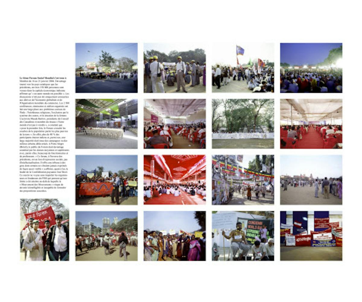 Das grosse Thema Serralongues ist die pathosfreie Bebilderung von alternativen Gipfeltreffen, Arbeitskämpfen und anderen politischen Handlungen mit dem Anspruch, dabei auch die eigene Motivation zu reflektieren. Den „Earth Summit“ dokumentiert er als Wechsel zwischen Drinnen und Draussen, zwischen gleichförmigen Veranstaltungen im Neonlicht und Strassenprotesten mit bunten Transparenten. Auf dem Spiel steht die Verschiebung von Kräfteverhältnissen („Rapport de forces“ heisst auch eine Publikation von Serralongue) und wie diese in engagierten Bildern eingefangen werden kann.