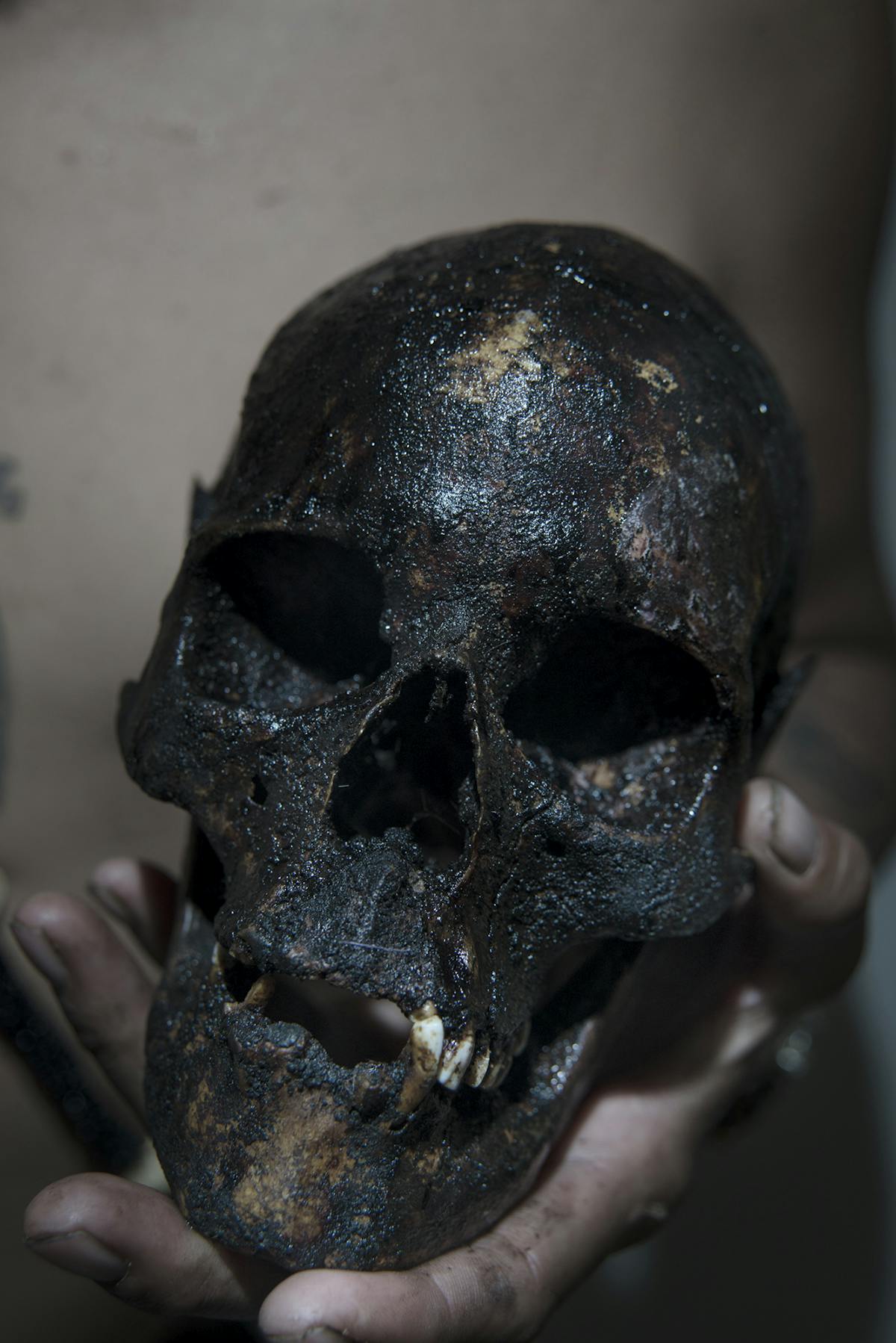 Adél Koleszár, Ritual with human skull, 2017, aus der Serie New routes of faith Adél Koleszár