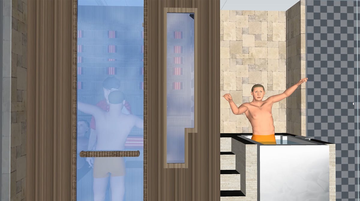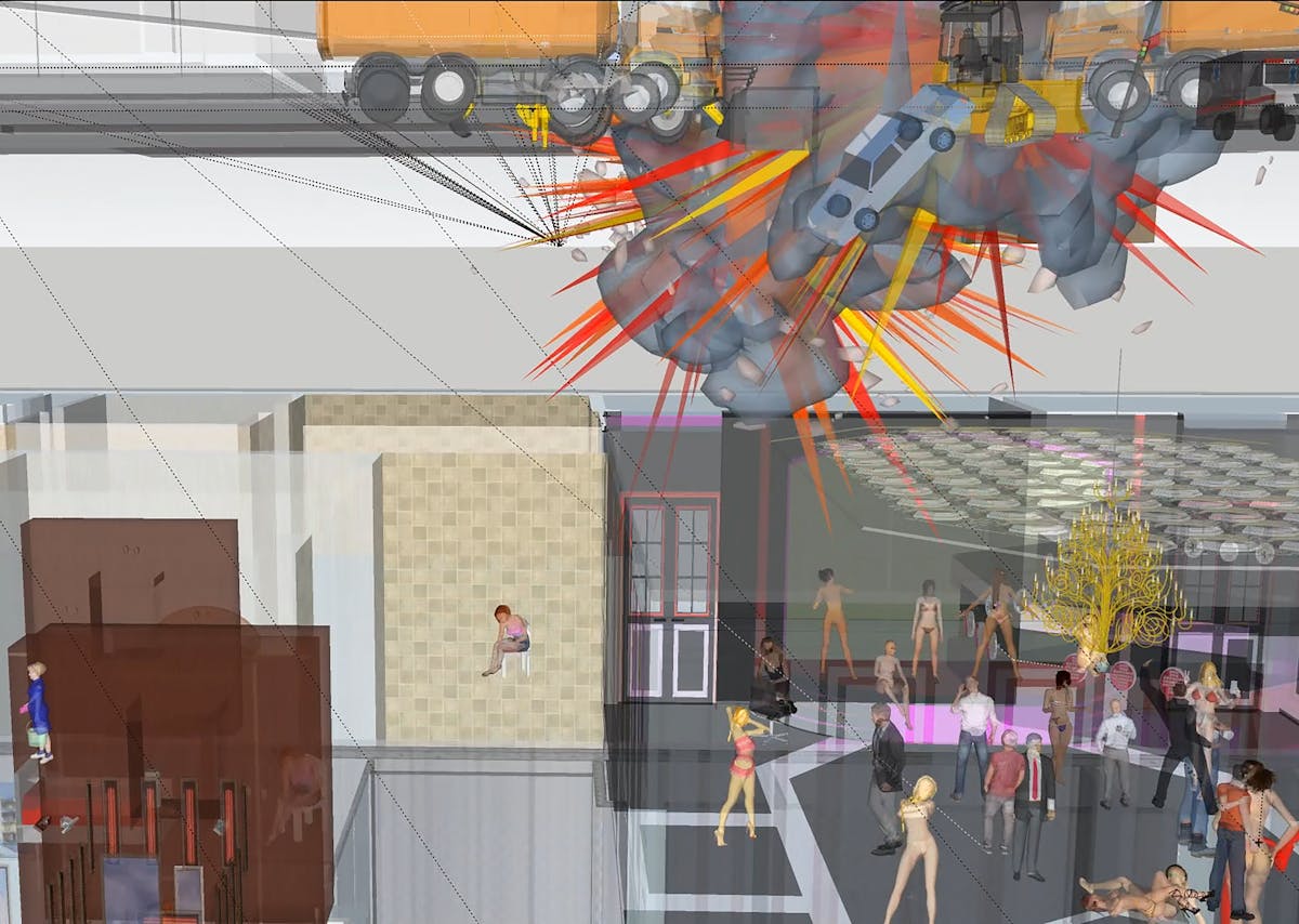 Max Colson, David Graham's proposed three floor subterranean extension to his London mansion (the 3D model includes a variety of animated speculations, courtesy of his neighbours, on what might happen underneath the ground), 2017, aus der Serie Construction Lines © Max Colson