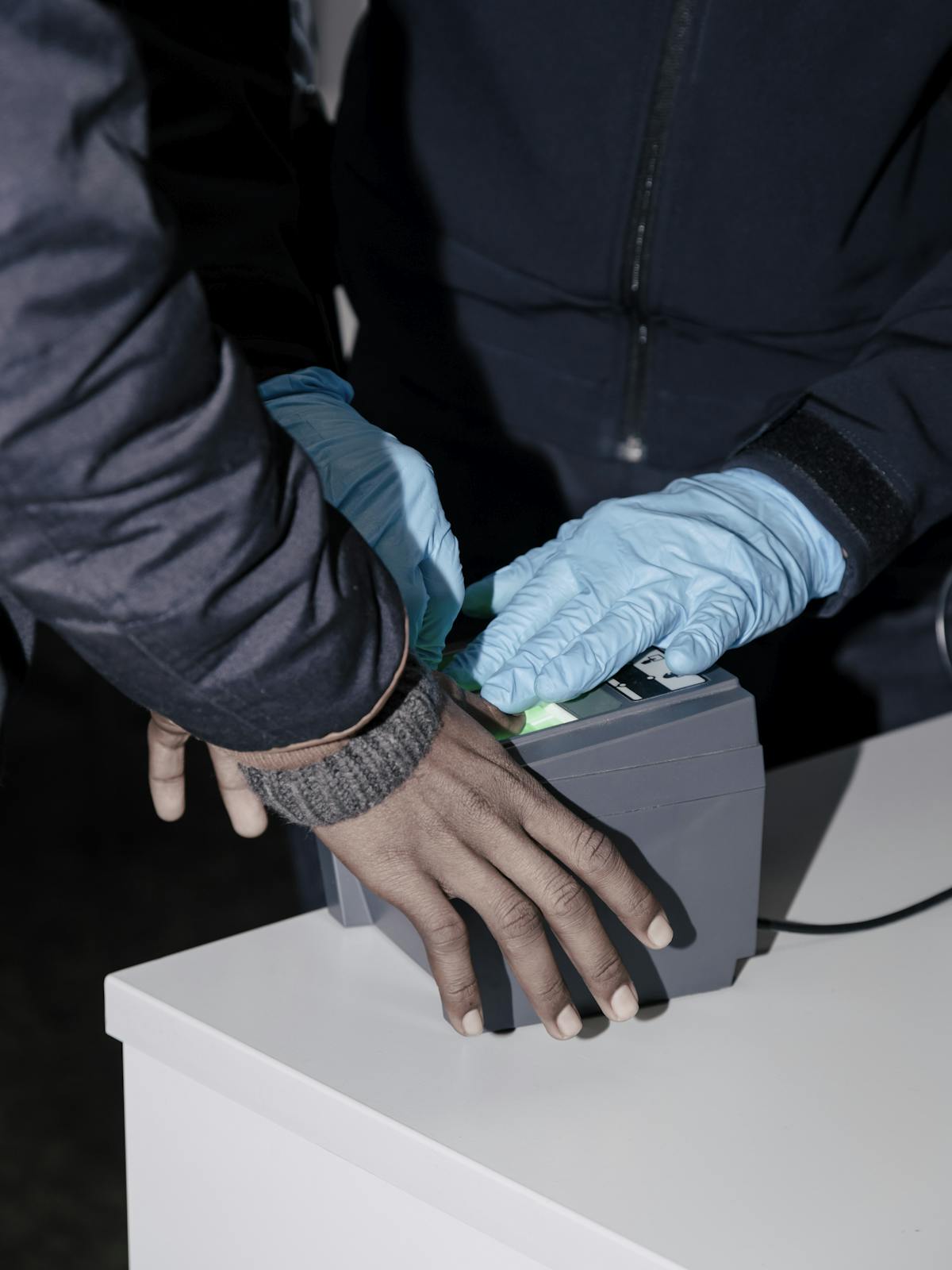 Salvatore Vitale, Migrant Control at the Border in Chiasso – Fingerprint Registration, 2016, aus der Serie How to Secure a Country Vitale