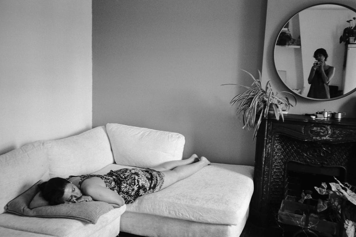 Sara Kontar, As My Mother Sleeps in Our Parisian Apartment, I Reflect on Our Arrival in 2016 and the Time We’ve Spent Residing in This Place. It’s Challenging to Label It as Our Ture Home; It’s More Akin to a Semblance of Home, but Not Quite There., 2023, aus der Serie Therefore, I Cut. © Sara Kontar
