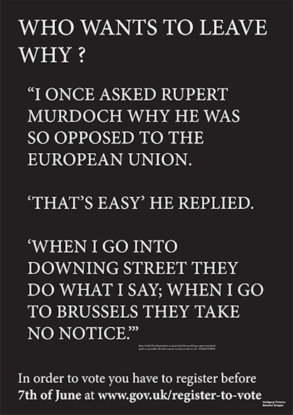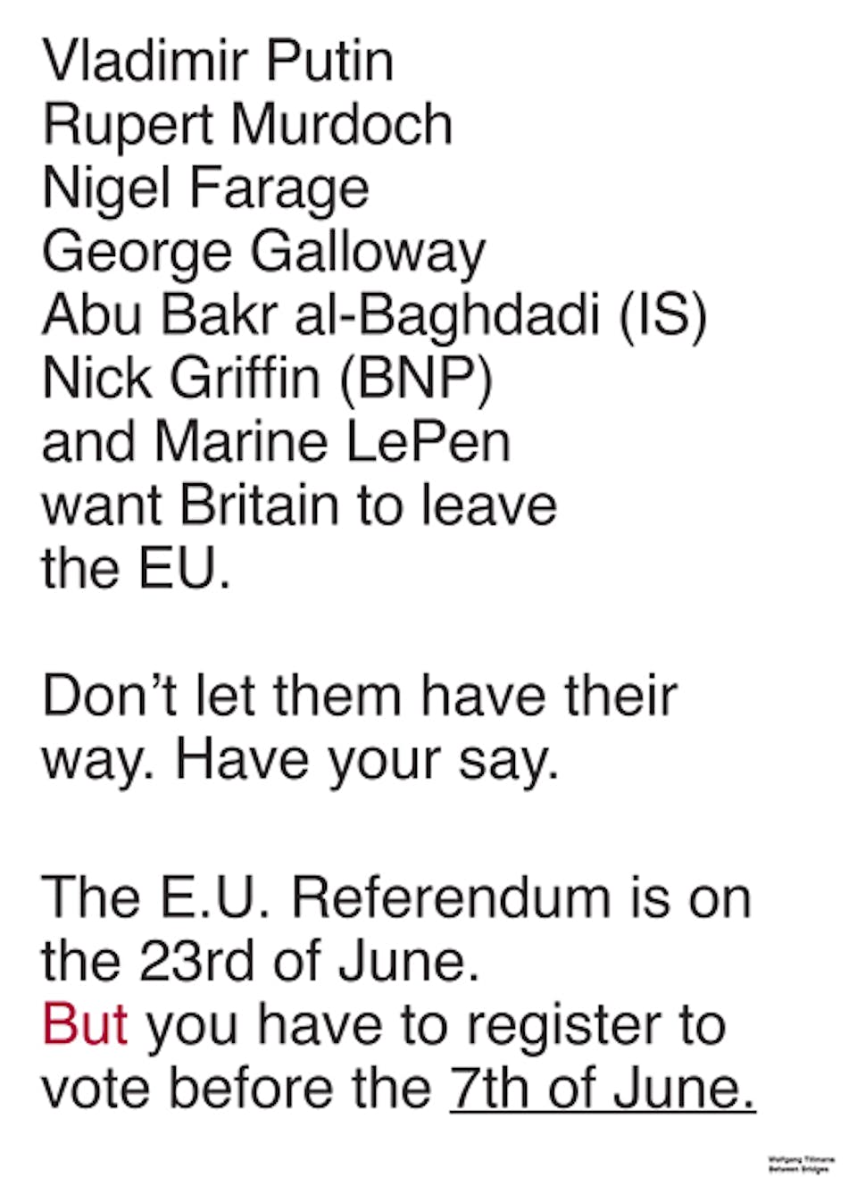 Wolfgang TillmansAnti-Brexit campaign, Vote remain on 23rd June -