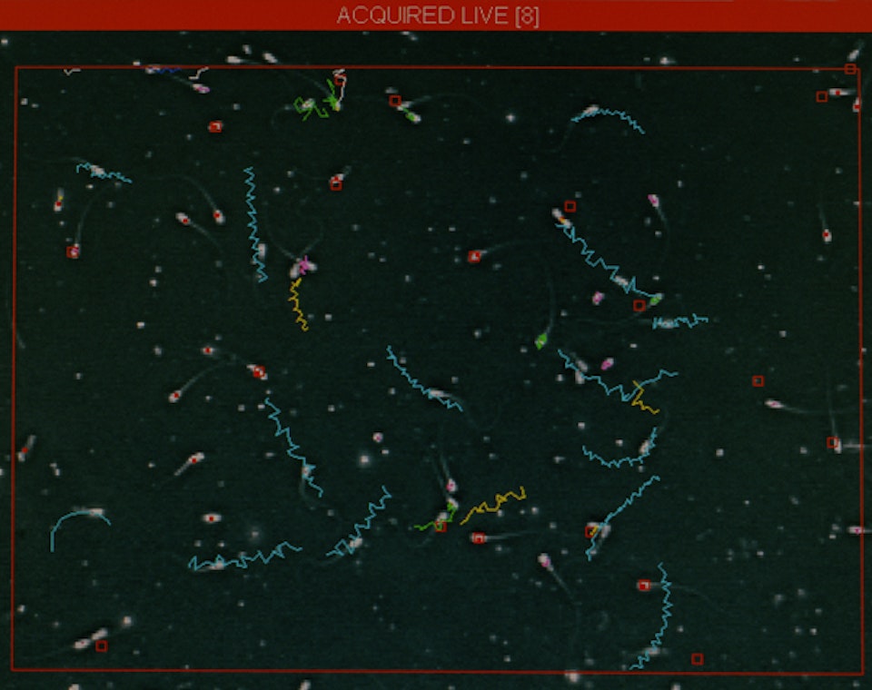 Yann MingardCreavia, Saint-Aubin-du-Cormier, France. Bull sperm bank. Spermiogram. -