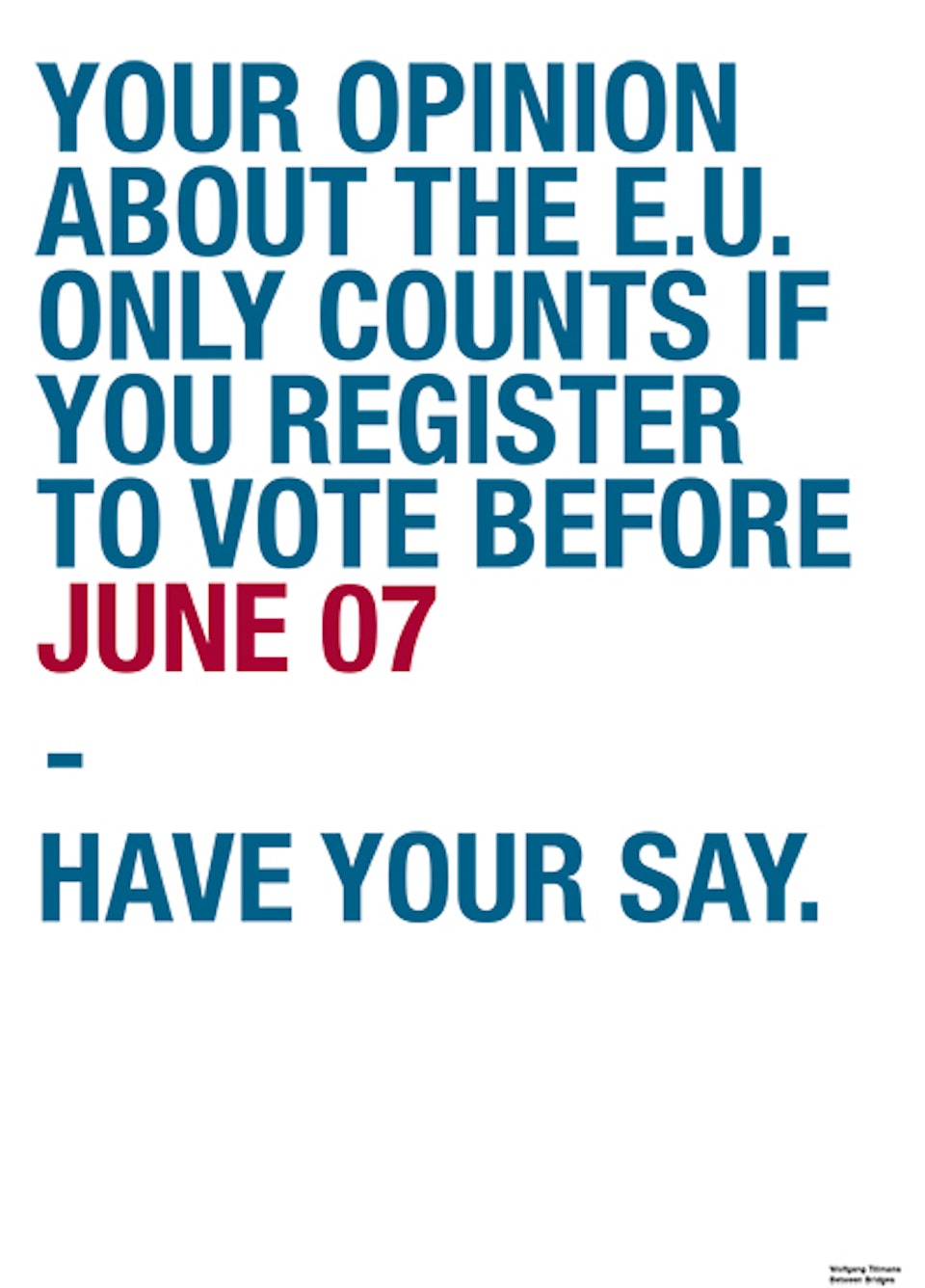 Wolfgang TillmansAnti-Brexit campaign, Vote remain on 23rd June -