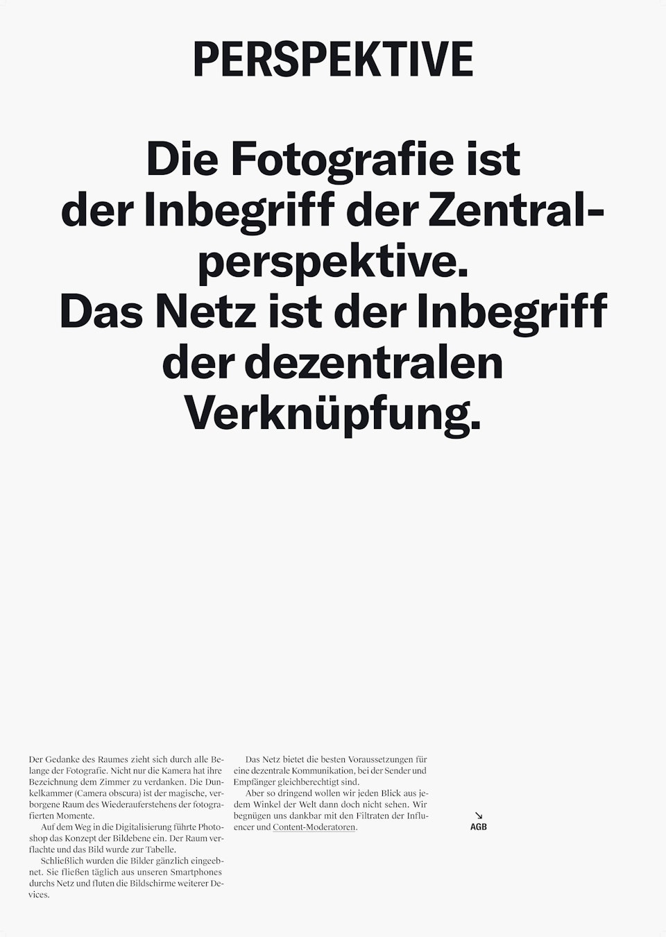 - Post-fotografische Arbeiten, die den Begriff, die Praktiken sowie die darstellenden und medialen Formen des Fotografischen herausfordern, reflektieren und erweitern, bilden seit der Neuausrichtung des Fotomuseum Winterthur 2015 und seinem Fokus auf die Vernetzung und Zirkulation fotografischer Medien und Bilder unter digitalen Bedingungen einen Schwerpunkt des Museums und seiner Sammlung.
