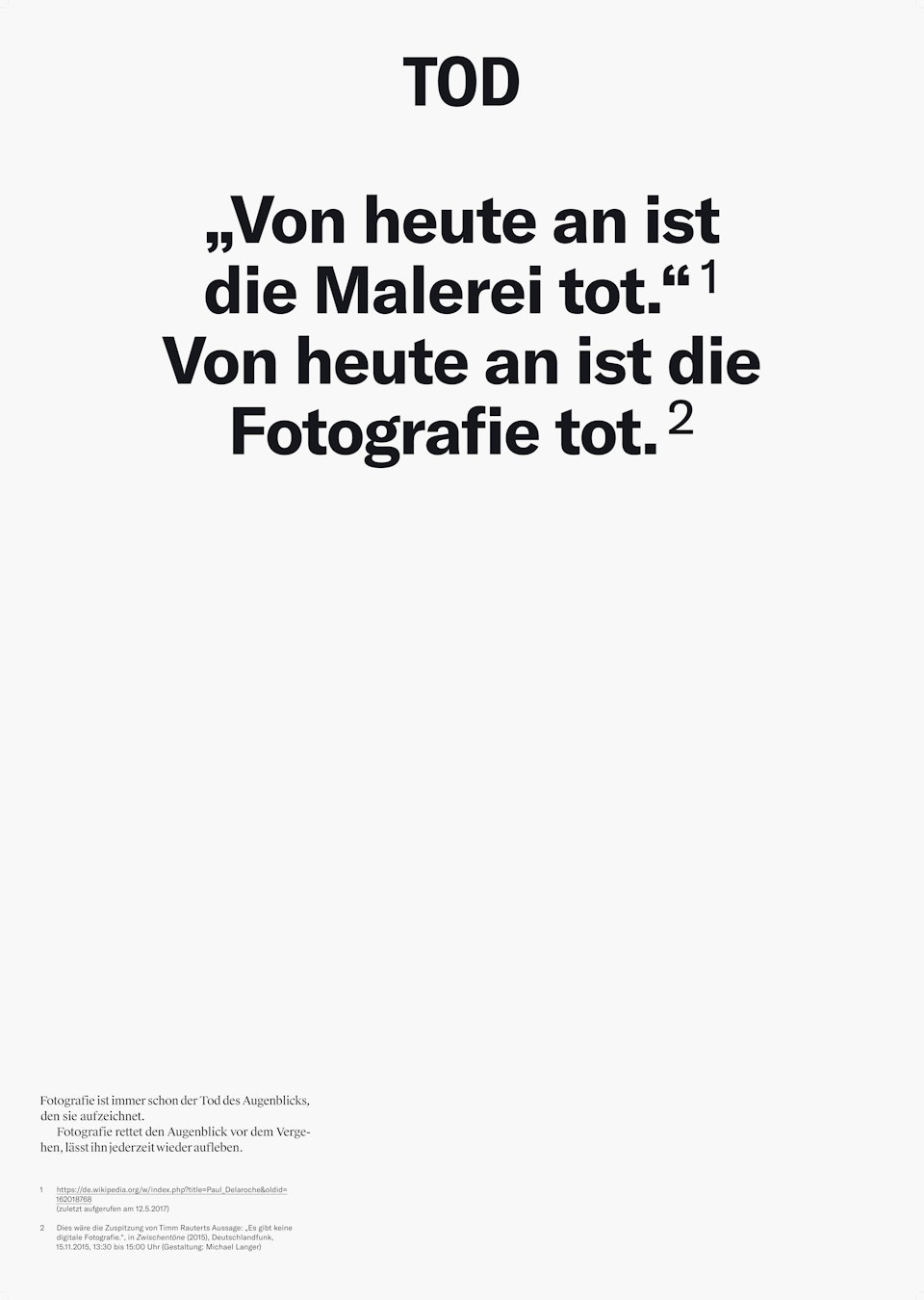 - Die konzeptuelle und medienanalytische künstlerische Fotografie, die über die Jedermann Collection, die ca. 300 Werkobjekte von 60 künstlerischen Positionen im Zeitraum von 1960 bis 1990 umfasst – u.a. von Sarah Charlesworth, Victor Burgin, Sherrie Levine und Hans-Peter Feldmann – stark vertreten ist.
