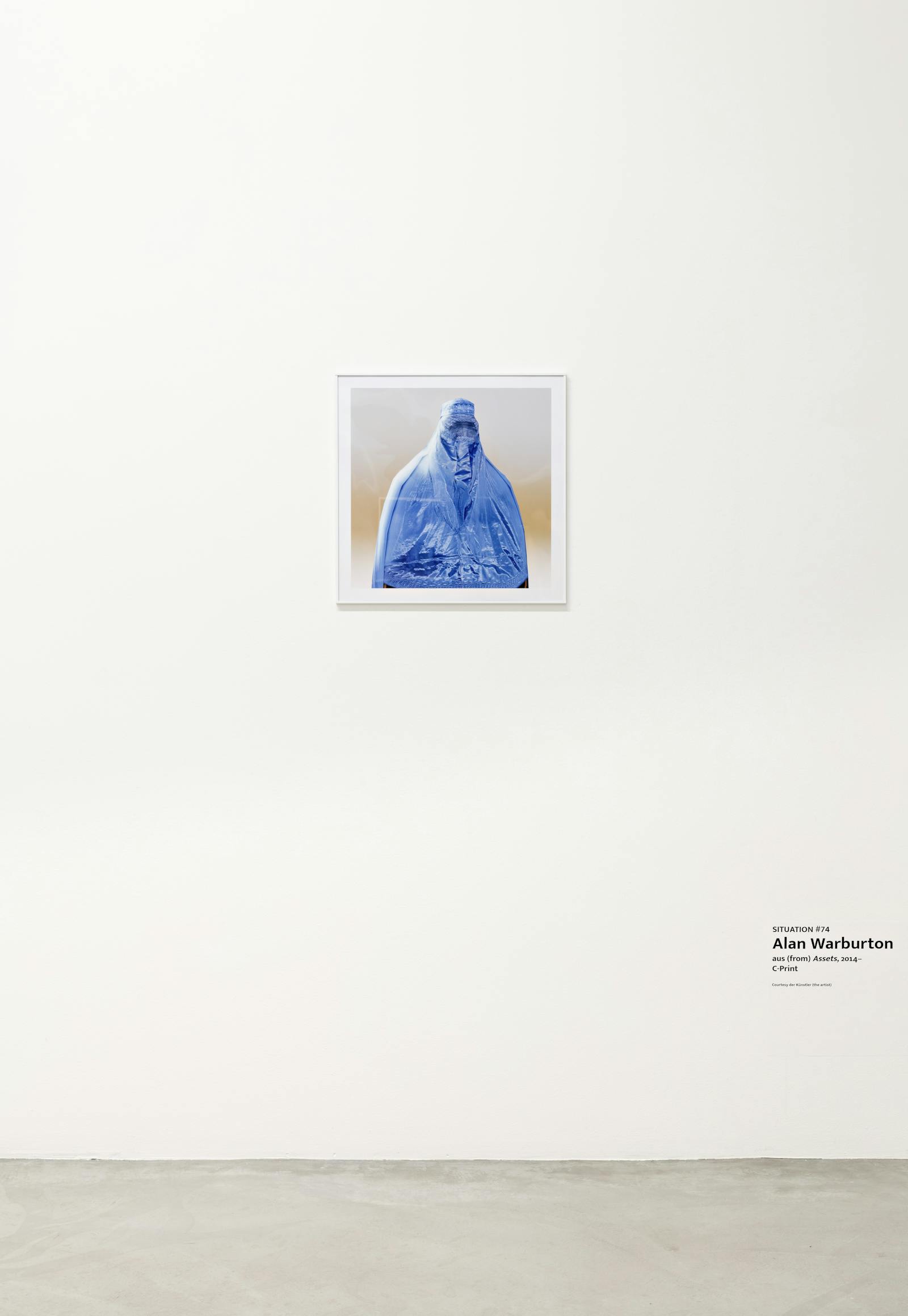 Alan Warburtons Assets sind computergenerierte, aus online Stockfotografie-Sammlungen entlehnte und appropriierte Bilder. Diese virtuellen Readymades sind reine, zeitlos-fotorealistische Darstellungen von Objekten, die von den Unvollkommenheiten der physischen Welt gänzlich unberührt sind. Ein Bild aus der Serie zeigt eine Burka – ein Objekt, das den eigenen Blick abschirmt und gleichzeitig die dahinterliegende Identität und Körperform verbirgt. Ähnlich bleiben auch digitale 3D-Werte stellvertretende Hüllen für die eigentliche Sache. Sie sind der Versuch, einen ursprünglichen platonischen Gedanken abzubilden – scheinbar unberührt von Interpretationen, frei von Zufällen und losgelöst von jeglichen politischen und sozialen Verstrickungen. Doch so sehr diese geisterhaften Fotografien auch versuchen, nichts als leere, entmaterialisierte Archetypen und Platzhalter darzustellen, sie werden stets von der Erinnerung an ihre Konnotationen und Kontexte verfolgt, die sich nicht abschütteln lässt.