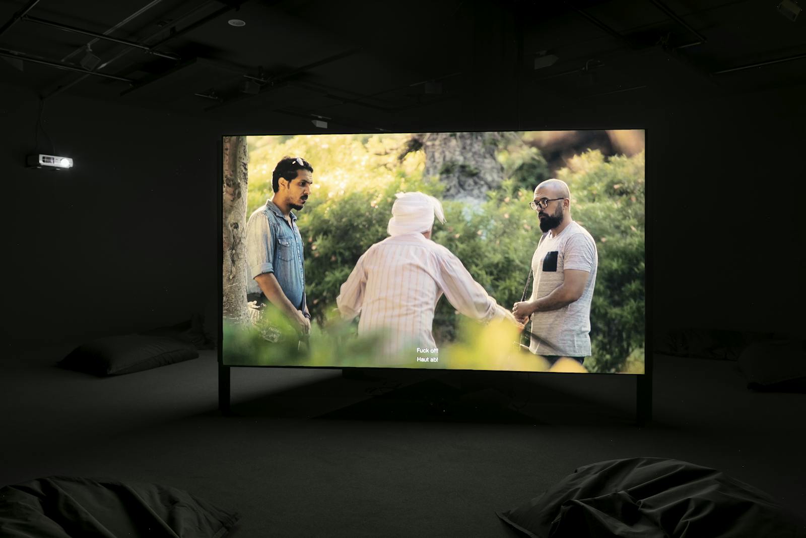 Aus dieser experimentellen Anordnung sind drei 16-minütige Spielfilme entstanden, in denen ein und dasselbe Narrativ Neuinterpretationen im Spiegel unterschiedlicher kultureller Codes erfahren. Mehr noch als diese offenzulegen, wirft die komplexe Verschränkung von Film-, Vorstellungs- und Medienbilder die Zuschauer_innen auf sich selbst und viele Fragen zurück: Wer sind die Autor_innen dieser parallel laufenden Geschichten? Wer filmt für welches Publikum? Wenn das nigerianische Nollywood, der zweitgrösste Filmproduktionsort weltweit, seine – üblicherweise auf den afrikanischen Kontinenten ausgerichtete – Perspektive dem Auftrag eines westlichen Arbeitgebers beisteuert, welche Realität wird inszeniert, welcher Blick, welches Publikum wird imaginiert? Kann es in Gaza, das vor allem als Kriegszone in der medialen Berichterstattung bekannt ist, auch eine künstlerische Auseinandersetzung geben? Und welche Erwartungen haben wir als Westeuropäer_innen an eine Filmszene in Myanmar, das nach jahrzehntelanger Militärdiktatur beginnt, sich der restlichen Welt zu öffnen? Die erstmals im Fotomuseum Winterthur präsentierte 3-Kanal-Installation erzeugt eine Zuschauer_innensituation, in der die Spannung sich überlagernder und verschränkter Blicke erfahrbar werden.