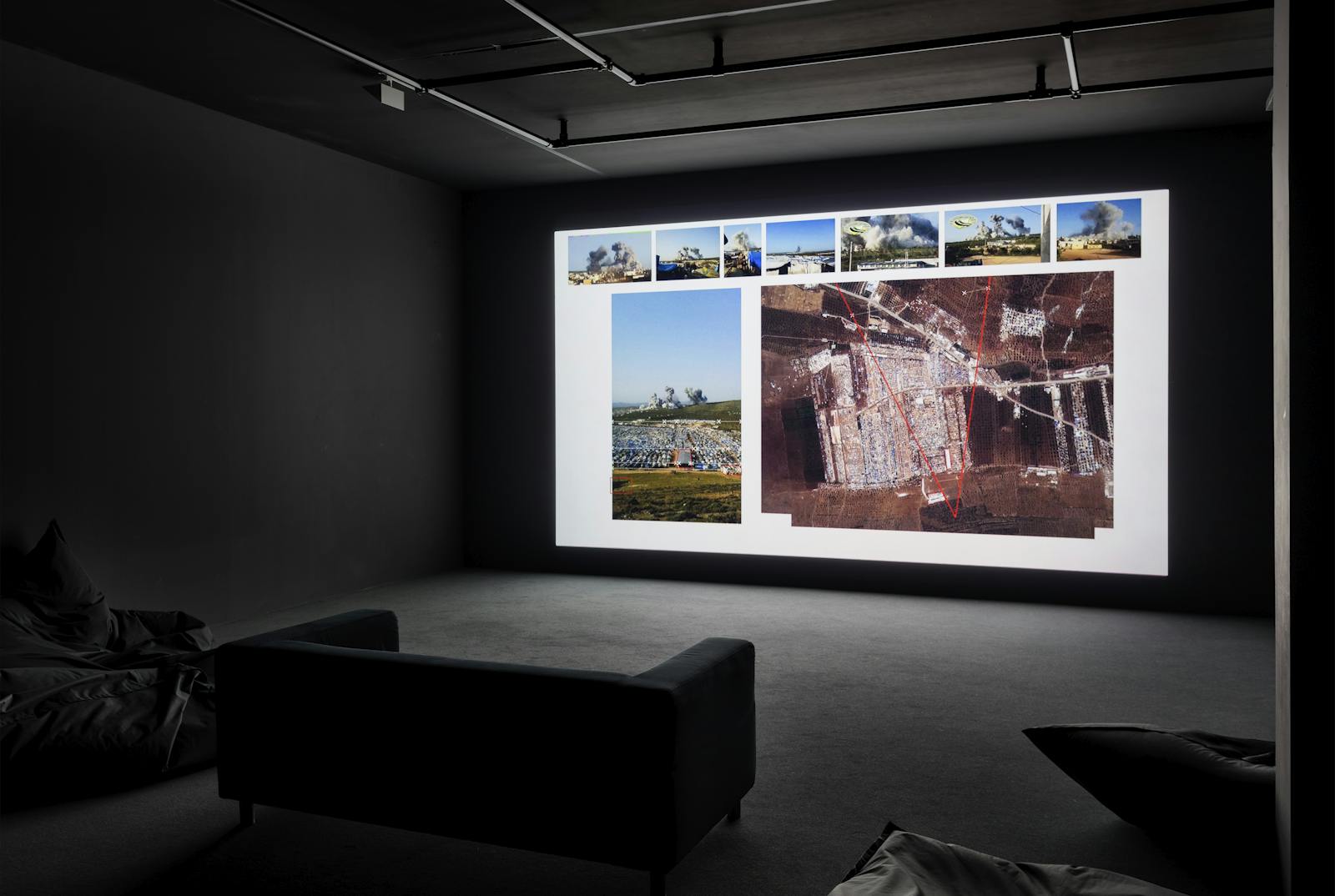 Forensic Architecture ist eine Forschungseinrichtung am Goldsmiths, University of London, die neue Formen der Architektur- und Medienforschung für politische und rechtliche Zwecke entwickelt. Die Gruppe untersucht Konflikträume und analysiert Kampfzonen als mediale Landschaften, die sie rekonstruieren und die von internationalen Strafverfolger_innen, Menschenrechtsorganisationen und Institutionen, die sich für politische Gerechtigkeit einsetzen, als Beweismaterial eingesetzt werden. Durch die Digitalisierung und augenblickliche Verbreitung und Verknüpfung von fotografischen Dokumenten über Online-Netzwerke können Bilder aus ganz unterschiedlichen Quellen zu grossen Bildclustern zusammengefügt werden. Daraus entwickelt sich ein erweitertes Verständnis von visuellem Beweismaterial, das über die jeweiligen Ausschnitte einzelner Bilder hinausgeht. So lassen sich beispielsweise Fotografien, die von Privatpersonen auf Twitter geteilt werden, mit Berichten von Journalist_innen oder staatlichen Medien zusammenfügen und analysieren – sämtliche Daten aller einzelnen Fragmente lassen sich zu einer Sammlung verknüpfen, aus der sich in ihrer Gesamtheit ein Ereignis als Bild-Raum modellieren lässt. Bomb Cloud Atlas liegen gesammelte Daten von verschiedenen Ereignissen im Syrienkonflikt im Jahr 2015 zugrunde, aus denen 3D-Modelle rekonstruiert wurden, wie beispielsweise der Luftangriff auf das Krankenhaus der Ärzte ohne Grenzen in Maarat an-Numan. Zusätzlich zu den 3D-Rekonstruktionen wird im Rahmen des aktuellen Clusters auch ein Video gezeigt, das einen Einblick in den Arbeitsprozess von Forensic Architecture gibt.