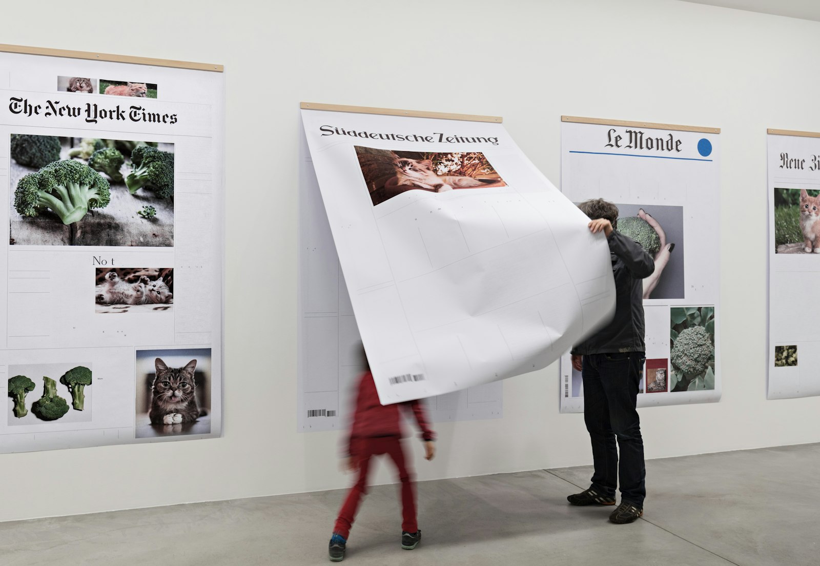 In Reminiszenz an Zeiten, in denen die gedruckte Tageszeitung noch ein scheinbar ungebrochenes Vertrauen genoss und als Leitmedium hoch angesehen war, entwickelte Cristina de Middel auf Einladung des Fotomuseums eine räumliche Installation, die den kritischen Nochzustand der physisch vertriebenen Drucksachen mit den fliessenden, nicht minder problematischen Parametern von Online-Nachrichtenportalen und der daran gekoppelten Transformation und Postproduktion von Bildern und Texten verbindet. EXTRA! EXTRA! ist das Geschrei der Zeitungsverkäufer_innen an einer belebten Strassenkreuzung um den Abverkauf der einstmals hohen Auflage. EXTRA! EXTRA! schallt ebenso durch die digitalen Kanäle um die Gunst der Likes, Klicks, Shares und Comments. Es erweckt den Anschein, dass sich in den letzten Jahren ein globaler Kanon von Schlüsselbildern und Schlagwörtern im Wettbewerb um die Gunst der Leserschaft entwickelt hat, dem alle Blattmacher_innen nur zu gerne folgen.
