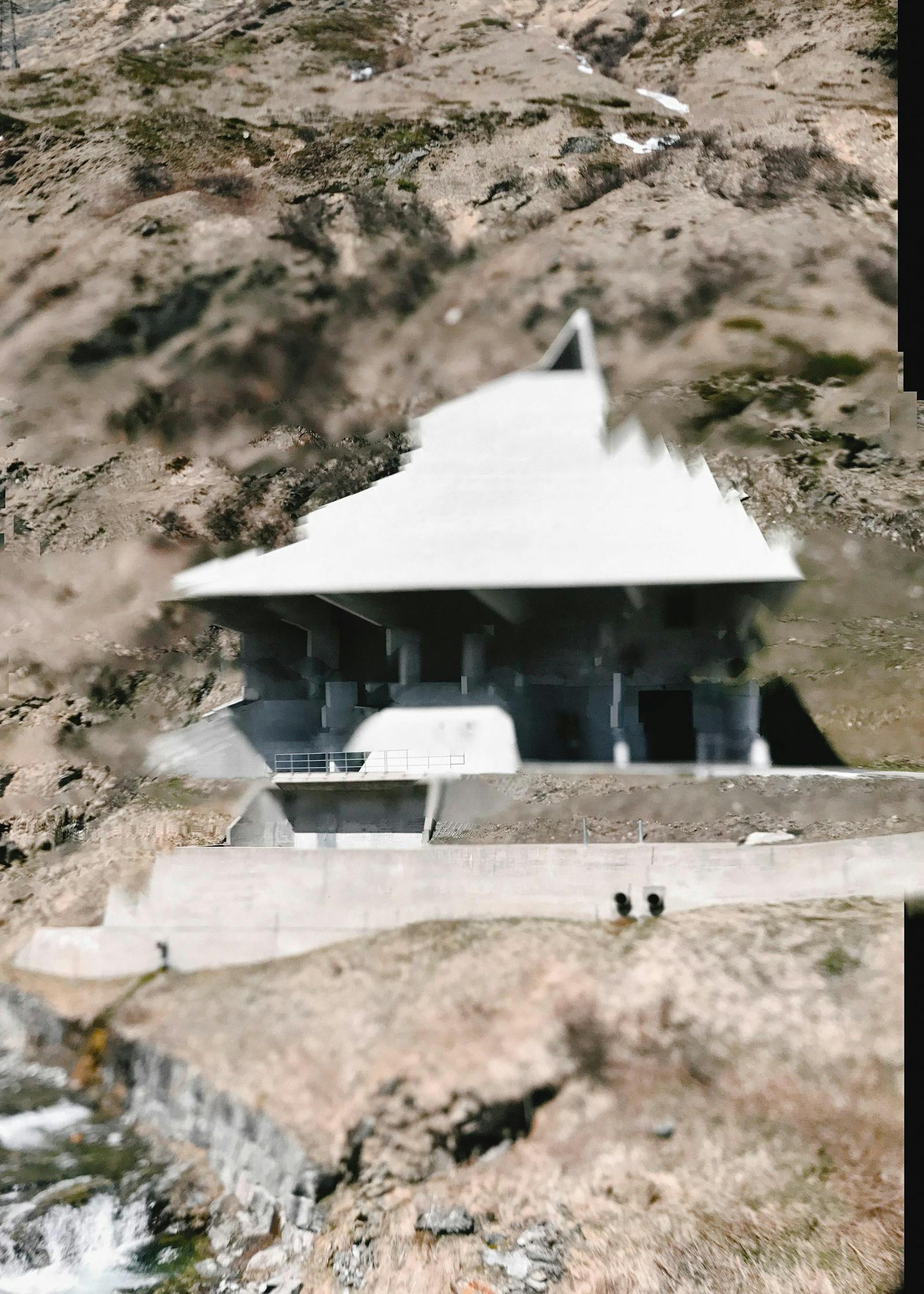 Die Grundlage von Florian Amosers Serie Aporetic Spectacle bildet eine computergestützte Kamera, mit der sich architektonische Landschaften vertikal scannen lassen. Dieses bildgebende System hat er an der Unterseite einer autonom fliegenden Drohne angebracht, die so programmiert ist, dass sie ein identisches Flugmuster dauernd wiederholt und dabei immer wieder die gleiche Szene aufnimmt. Die Software versucht dabei jedes Mal, die Abweichungen auszugleichen und die erfassten Daten zu einem nahtlosen Bild zusammenzufügen. Sie scheitert jedoch unaufhörlich an der Rekonstruktion einer fehlerlosen visuellen Wahrnehmung. Das Ergebnis dieses Prozesses ist eine Serie von Bildern, die die Spannung zwischen maschinischer und menschlicher Sicht offenlegt. Innerhalb dieser Spannung lassen sich die unkontrollierten Verzerrungen der Landschaft als subtiler Widerstand gegen das Programm der Kamera begreifen, das darauf ausgerichtet ist, das menschliche Auge nachzubilden. Es scheint, als zeige sich in den Mustern ein unbewusstes maschinisches Sehen, das sich direkt im Bild manifestiert.