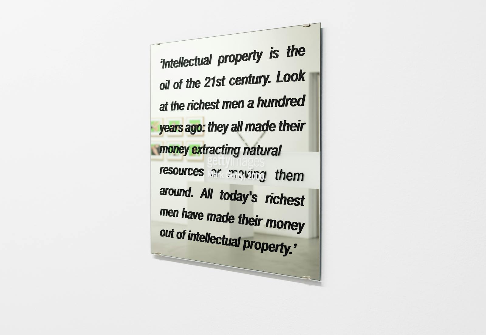 Im Jahr 2014 hat Getty Images sein Wasserzeichen in einen Einbettungscode umgewandelt: Dieser erlaubt es der Firma, die Distributionswege ihrer digitalen Bilder nachzuverfolgen, wodurch das online-Nutzungsverhalten identifiziert und bei Nutzung des Bildes automatisch Werbeanzeigen auf dem Netz geschalten werden. Für SITUATIONS/Platzhalter hat die Künstlerin ihre Serie um die Arbeit P362645 01: UNDATED FILE PHOTO: Portrait of Mark Getty. (Photo by Liaison) erweitert: auf dem Museumsfenster klebt eine ortsspezifische Version des „digitalen Wasserzeichens“ – ein HTML Code, hinter dem das Porträt von Mark Getty, dem Gründer von Getty Images, steht.