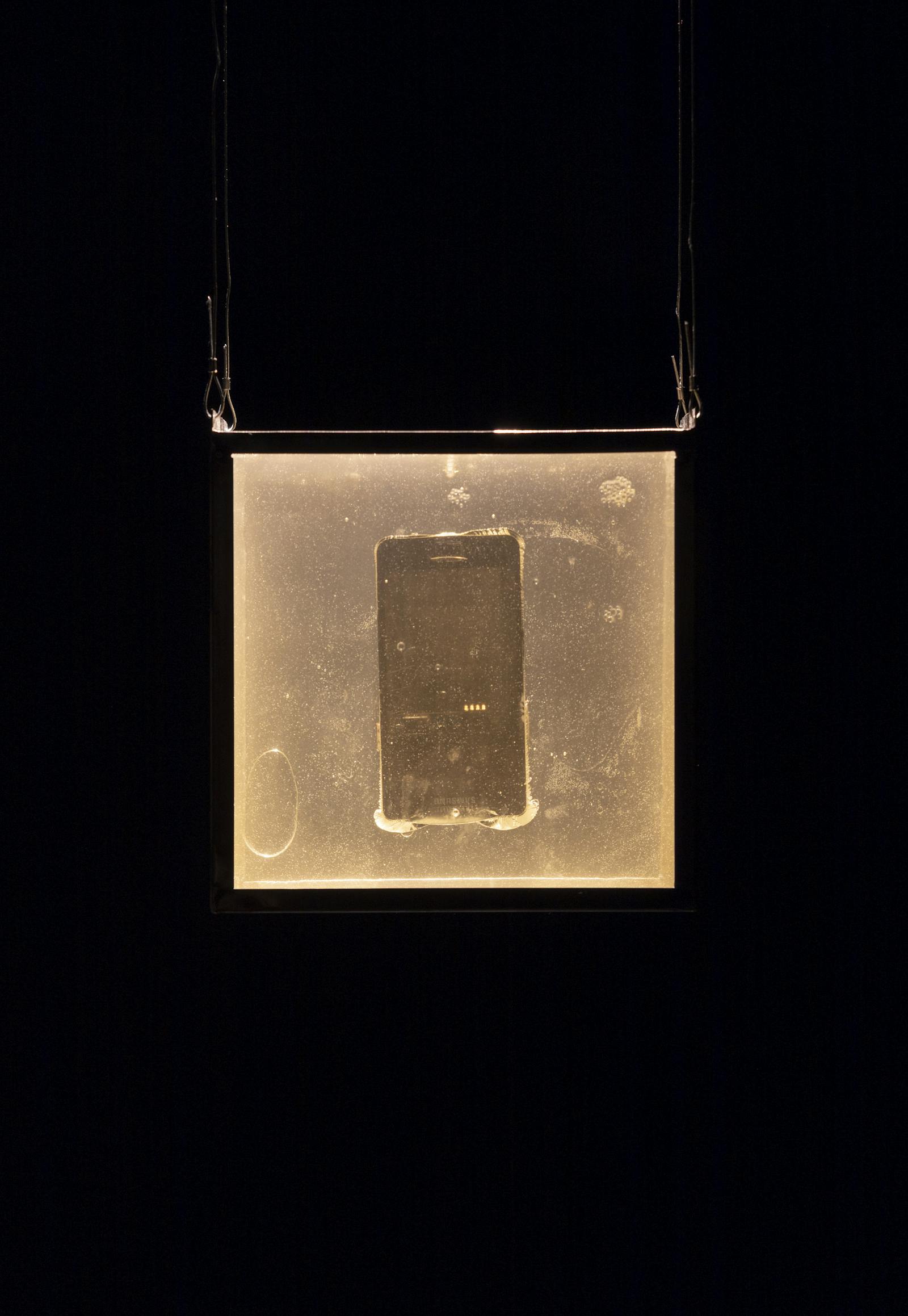 Digitale und vernetzte Bilder vervielfältigen sich und sammeln sich auf Festplatten, Smartphones, USB-Sticks und Servern an. Alte Medien(speicher)geräte sind voll mit Daten, die niemals sterben. Unseren gesamten digitalen Fussabdruck zu löschen, erscheint uns nicht nur als Sisyphusarbeit, sondern als beängstigende Aussicht: Wir scheinen nie völlg bereit zu sein, unsere privaten Bilder loszulassen. Lieber opfern wir sie massenweise – und meist unbewusst – den Überwachungssystemen von sozialen Netzwerken, als zu riskieren, sie zu verlieren oder Zeit und Mühe aufzuwenden, um sie zu beseitigen. Goodnight Sweetheart des Künstler_innen-Forschungsduos FRAUD (Audrey Samson & Francisco Gallardo) ist eine Installation aus sechs einbalsamierten Datenspeichern. Sie sind das Ergebnis einer digitalen Datenbestattung, gleichsam einem Akt des symbolischen Exorzismus „untoter“ Medien. Dieses Ritual scheinbar vergeblicher Löschversuche soll einen psychologischen Abschluss – eine „closure“ – bieten, reflektiert aber gleichzeitig auch die Politik des Löschens. Aber auch wenn digitale Geräte mit Epoxidharz übergossen und unsere Bilddaten einbalsamiert und so eingeschläfert werden: können wir der unvermeidlichen, ständig zunehmenden und anhaltenden Datafizierung unserer Gesellschaft wirklich entkommen?