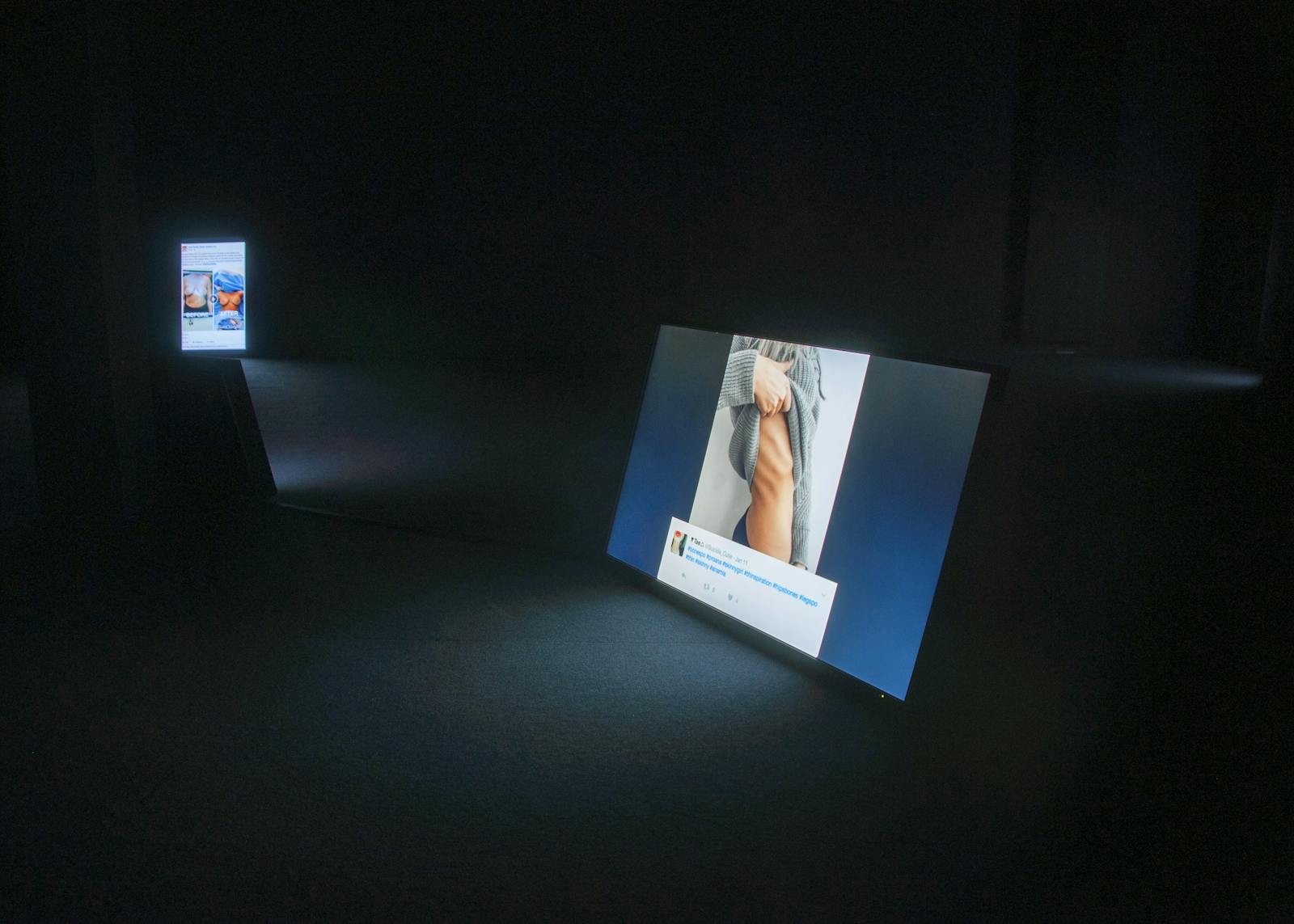 Die Bildsammlung untersucht Körperbilder auf aktuellen Social Media Plattformen. Über Hashtags wie #beforeandafter oder #genderlessnipples werden Körperteile über die Kanäle verteilt, wo sie unsere Facebook- und Instagram-Feeds überfluten. Sie tauchen auf unseren Smartphones und mobilen Geräten auf: Immer näher, immer stärker mit unserem eigenen Körper verbunden, wirken sie auf uns ein und infiltrieren uns subkutan. Indem sie ein instabiles visuelles Narrativ des „Fleisches“ schaffen, bestätigen und negieren sie gleichzeitig unsere imaginären Schönheitskanons. Millionen von Bildern von Bauchmuskeln, Bizeps und Oberschenkeln zirkulieren unermüdlich und verstärken ästhetische Normen oder schaffen Gegennarrative des Widerstands und des Protests. Auf Fotos chirurgischer Eingriffe, die führende Schönheitskliniken auf Facebook posten, prallt das verstümmelte Fleisch des Twitter-Hashtags #scarification. Hinter #bodybuilding schwellen die Muskeln, und auf Tumblr schreien „dick pics“ (Penisbilder) nicht nur nach Aufmerksamkeit, sondern wollen rezensiert werden. „Lang lebe das neue Fleisch“ – lebendig und von unseren Bildschirmen nicht mehr wegzudenken, rücken sie uns über die vernetzten Kanäle und Bildschirme immer näher auf den Leib.