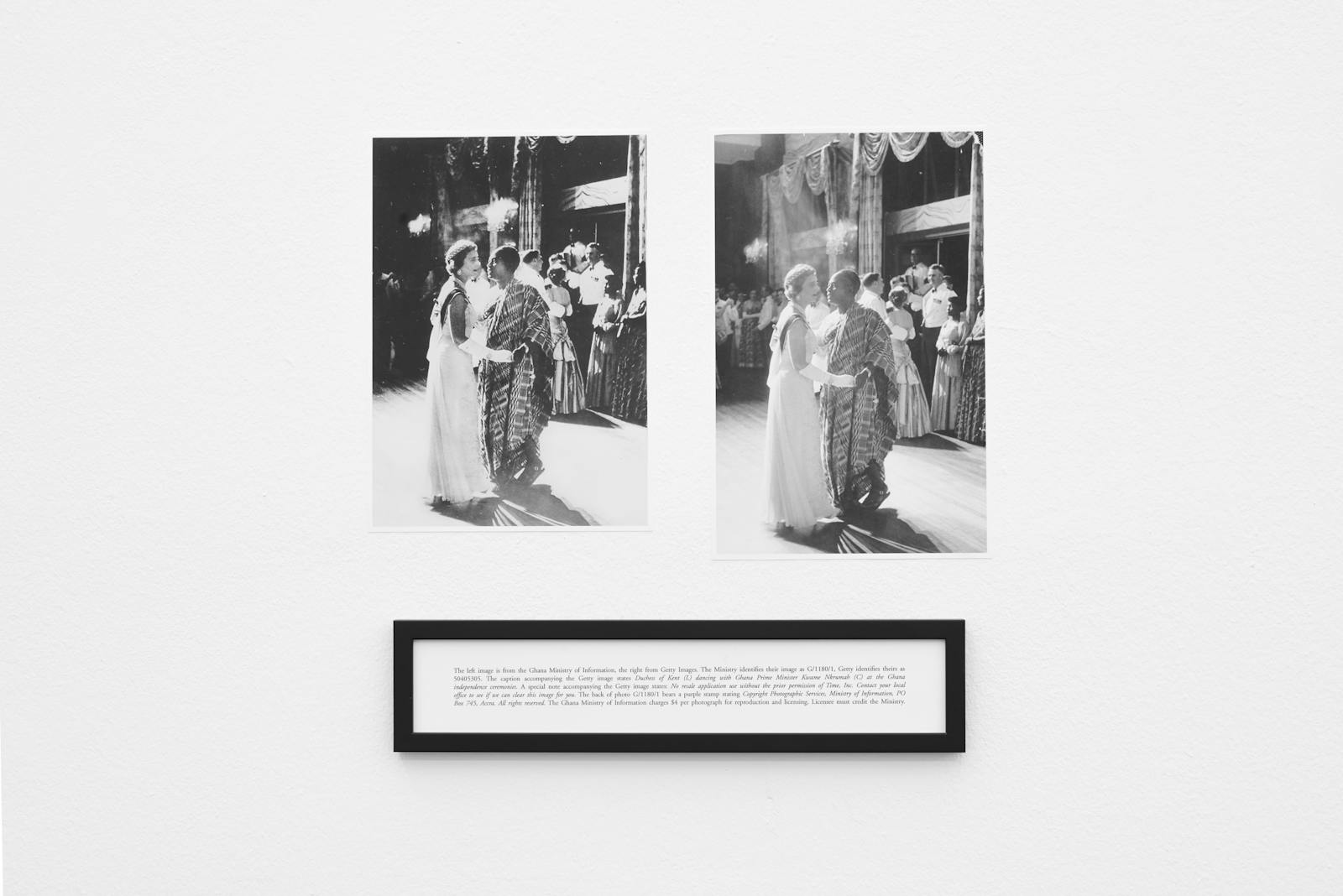 In ihrer aktuellen Fotoserie Versus versammelt Maryam Jafri Bilder der nationalen Befreiung in Afrika aus verschiedenen öffentlichen und privaten Archiven. In „Getty vs. Ghana“ stellt sie beispielsweise Fotografien der ghanaischen Unabhängigkeit, die sie auf der Website von Getty Images gefunden hat, entsprechenden Bildern aus dem Informationsministerium des Landes gegenüber. Dabei zeichnet Jafri eine Spur von Fehlern nach – falsche Datumsangaben, fehlerhafte Bildunterschriften, abweichende Lesarten – und legt die Manipulation der Originalfotos offen. Jafris Werk verweist auf die instabile Beschaffenheit von Bedeutung innerhalb des fotografischen Archivs, auf die ständige Spannung zwischen dem institutionellen Willen, dem Bild eine Bedeutung aufzudrücken, und dem ungeregelten Wildwuchs des Bildes. Die Künstlerin zeigt, dass ikonische historische Fotografien in komplexe Strukturen von Eigentum und Kontrolle eingebettet sind, und hält den Finger auf Probleme im Umgang mit Urheberrecht, digitaler Reproduktion und der Privatisierung von nationalem Erbe. Wie die Serie andeutet, definiert sich die Auslegung von Geschichte und zeitgenössischer kultureller Bedeutung über Netzwerke institutioneller Macht, die sowohl produktiv als auch unerschöpflich sind.