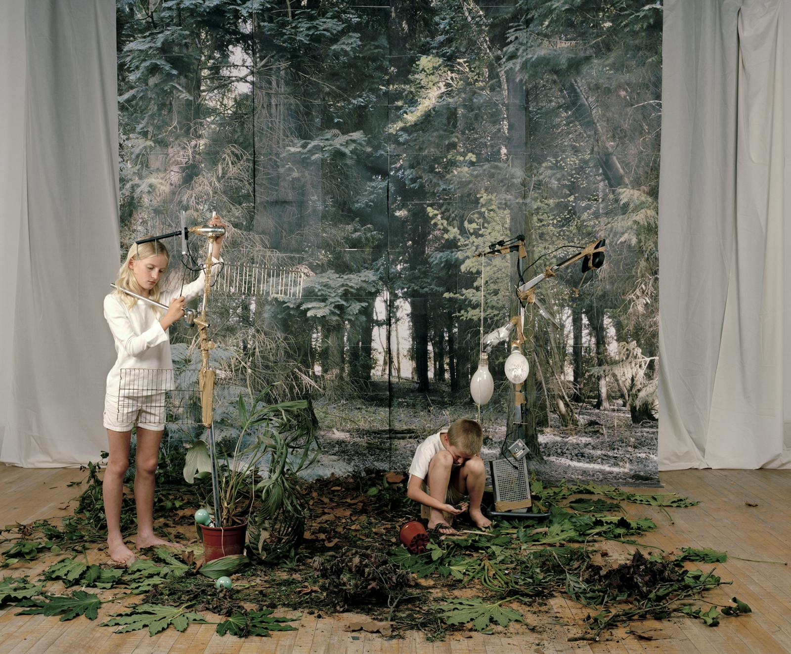 Noémie Goudals Arbeiten situieren sich an den unscharfen Grenzen zwischen natürlichen und künstlichen Landschaften und spielen mit der ambivalenten Rolle der Fotografie als ein gleichzeitig immersives und distanzierendes Werkzeug. Indem sie die Transparenzillusion des Mediums bricht, bringt die Künstlerin konstruierte Umgebungen und hybride Welten hervor, in denen Realität und Bild koexistieren. Ein Kind bewegt sich durch die Falten einer fotografischen Landschaft; Blätter verteilen sich auf dem Boden, bis ins gedruckte Bild hinein. Indem Goudals Fotografien die räumlichen Grenzen verschwimmen lassen, verwickeln sie uns in neue Realitäten und fordern uns dazu auf, in eine unentwegte Auseinandersetzung mit unserer Umgebung zu treten – eine Umgebung, in der wir stets unsicher sind, ob wir es nun mit repräsentierten und simulierten Objekten zu tun haben oder mit den tatsächlichen natürlichen Elementen.