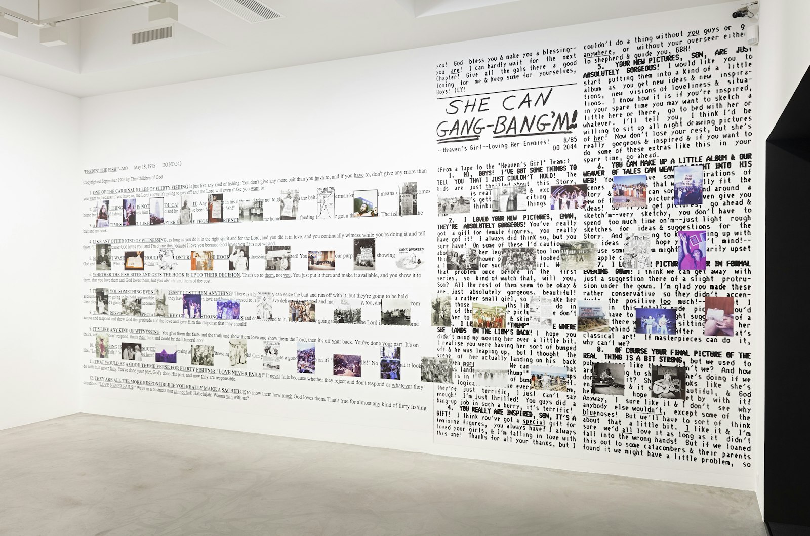 Auf Grundlage ihres Familienarchivs, propagandistischen Comics, Texten und Videos sowie Archivbildern anderer Mitglieder aus dem Netz reflektiert die italienische Künstlerin Alba Zari in ihrer fortlaufenden Arbeit Occult die Propagandawerkzeuge der christlich-fundamentalistischen Sekte The Children of God (heute: The Family International), in die sie hineingeboren wurde. Die 1968 von David Berg (alias Moses David) in Kalifornien gegründete Sekte verbreitete sich im Laufe der 1970er Jahre weltweit und geriet in Verruf, weil sie zu Sex mit Minderjährigen ermutigte und Frauen zur Prostitution für die Rekrutierung neuer Mitglieder zwang, die sie unter dem Namen «Flirty Fishing» kultivierte. Dazu gehörte auch die Trennung der so gezeugten Kinder, sogenannter «Jesus Babies», von ihren Müttern. Ein Schicksal, das Zari und ihre Familie teilen: So gerieten ihre leibliche Grossmutter mit 33 Jahren und ihre Mutter, damals 13 Jahre alt, in die Fänge der Children of God. Die zusammengetragenen Fragmente führen auf eine fotografische Spurensuche, die die propagandistischen Mechanismen der Sekte zu begreifen versucht und die Betrachtenden brutal mit dem Schicksal einer Familie – und damit stellvertretend dem Trauma von so vielen anderen Frauen und Kindern – konfrontiert. Das durch die öffentlichen Archivbilder erfahrbare Gefühl von Gemeinschaft, Ekstase und Zugehörigkeit steht dabei im absoluten Kontrast zu dem spürbaren individuellen Schmerz, der Verherrlichung von Kindesmissbrauch und Zwangsprostitution und letztlich auch den kolonialen Praktiken des Kults unter dem Deckmantel christlicher Missionierung.