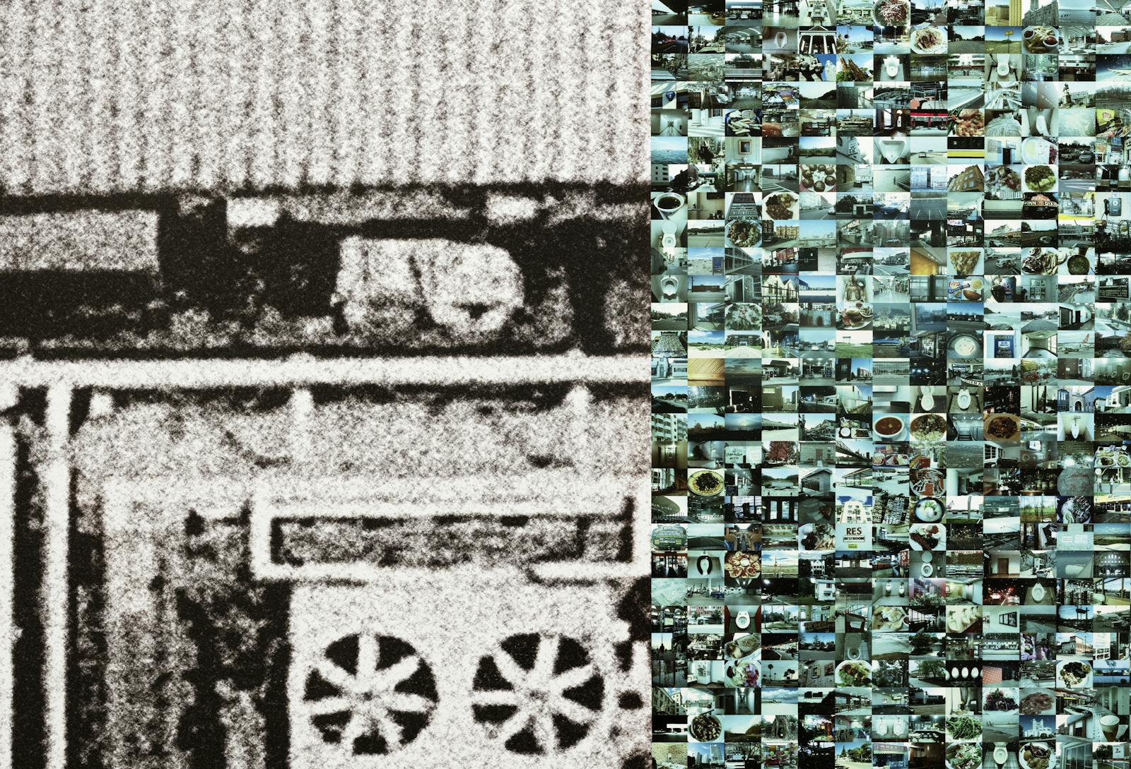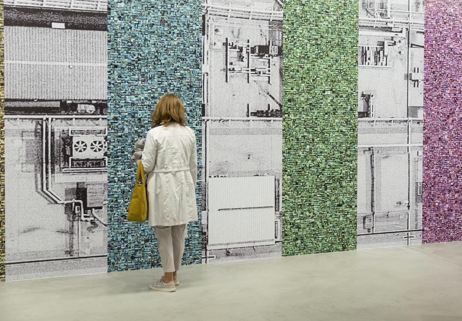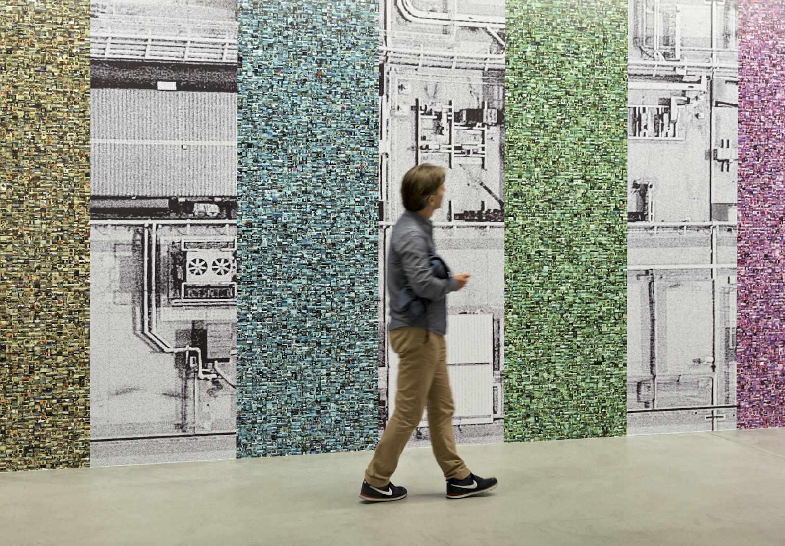 2002 wurde der US-amerikanische Medienkünstler Hasan Elahi nach einem Rückflug in die USA vom FBI abgefangen und verhört. Der Grund: Terrorverdacht. Über 6 Monate musste er wiederholt bei den Behörden vorsprechen. Auslandsreisen sollte er künftig vorher anmelden. Dies gab den Impuls zu seinem Selbstüberwachungsprojekt Tracking Transience (2003–), in dem er seit 14 Jahren sein Leben online dokumentiert. Jahre bevor die Bilderfluten von Smartphones sich mittels Apps wie Flickr oder Instagram ins Netz ergossen, begann Elahi konsequent alle Orte zu fotografieren, an denen er sich aufhält. Die Fotos lädt er auf seine Webseite, auf der auch sein Standort permanent mittels GPS nachvollzogen werden kann. In Elahis wandfüllender Fotomontage Prism v2.0.5 (2017) treffen unterschiedliche immersive Systeme aufeinander. Grosse, schwarzweisse Luftaufnahmen zeigen das NSA-Hauptquartier – einen der Knotenpunkte weltweiter Überwachung. Demgegenüber steht ein kleinteiliges Bildmosaik mit Fotos von Elahis Selbstüberwachung.