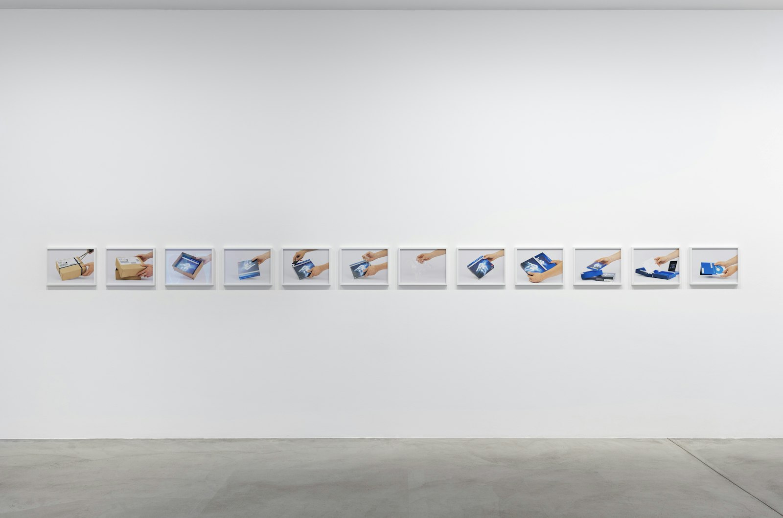 Unboxing Photoshop des deutschen Fotokünstlers Adrian Sauer widmet sich dem populären Online-Phänomen des unboxings: das mal trocken vorführende, mal sinnliche, gleichsam voyeuristisch Zur-Schau-stellende Auspacken von Produkten aus Technik, Kosmetik und Mode vor der Kamera. In der 12-teiligen Fotoserie sind die Hände Sauers zu sehen, wie sie Schritt für Schritt das Produkt des Begehrens – hier die Bildbearbeitungssoftware Photoshop – enthüllen: von der Öffnung des Pakets, dem Entfernen der Verpackungsfolie bis hin zum Herausnehmen des eigentlichen Produktes. Unboxing Photoshop führt zum einen ein zeitgenössisches visuelles Phänomen vor, das ein grundlegendes Bedürfnis unserer Konsumgesellschaft – nämlich den Besitz eines Produktes – über den Blick (als Ersatz) zu befriedigen versucht. Zum anderen verweist der Rückgriff auf Photoshop auf die zunehmende Verlagerung des fotografischen Herstellungsprozesses vom Analogen ins Digitale.