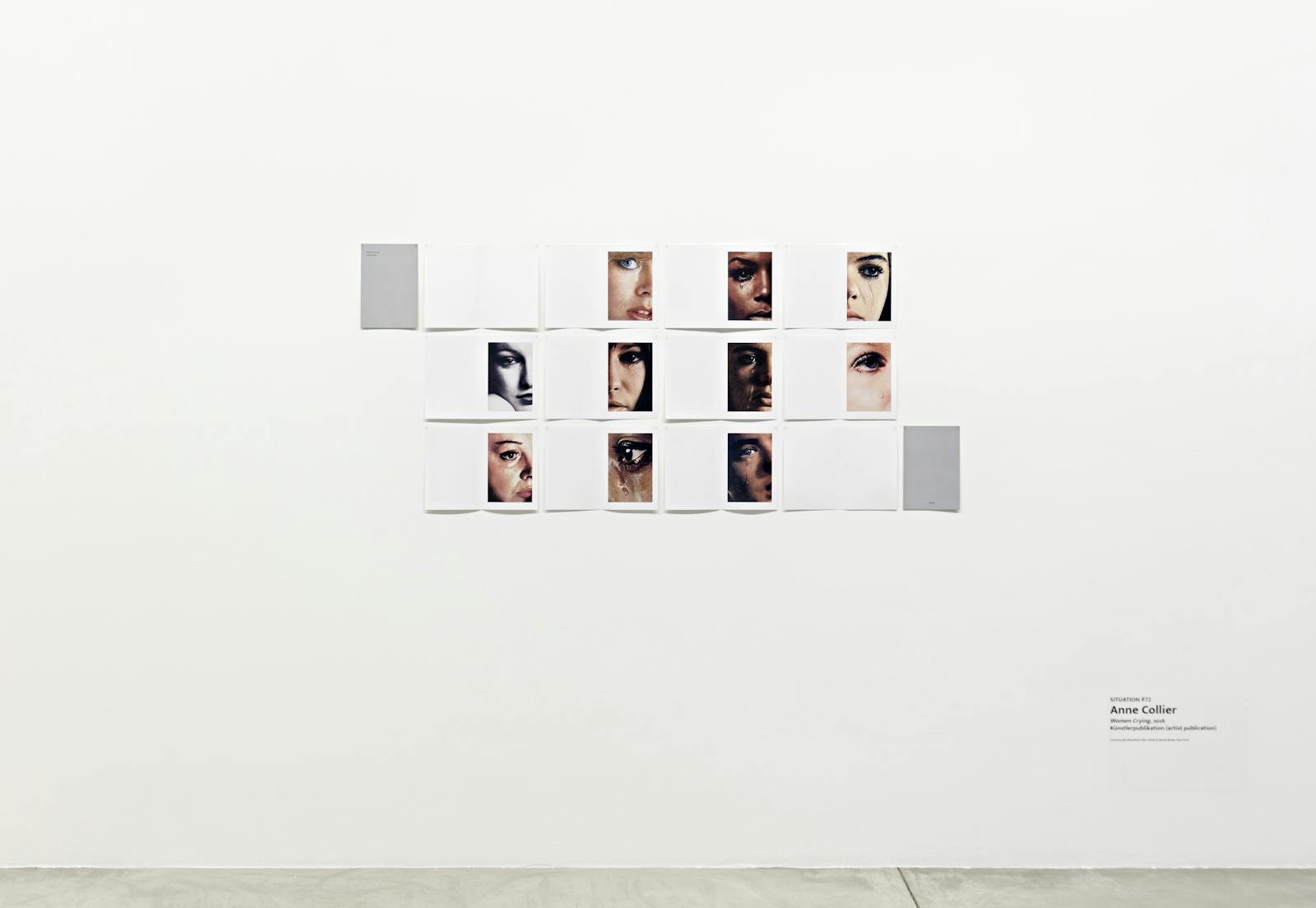 Women Crying umfasst eine Serie von Bildern, die alle das gleiche wiederkehrende Motiv zeigen: weinende Frauen, wobei ihr Gesicht jeweils stark vergrössert und angeschnitten ist. Das Bildmaterial hat Anne Collier Plattencovern der 1960er bis 1980er Jahre entnommen, die – passend zu Titeln wie You like to make little girls cry (Daniele Alexander) – von weinenden Frauen geziert werden. Indem Anne Collier die Fotografien aus ihrem ursprünglichen Kontext herauslöst und einer visuellen Analyse unterzieht, tritt die romantisierte, verletzlich inszenierte Weiblichkeit deutlich hervor. Women Crying entlarvt die emotionale Bildsprache als geschlechtsspezifische Inszenierungsstrategie, die in uns die immer gleichen Botschaften abruft und reproduziert. Damit schafft Collier einen analytischen Gegenblick zum gewohnten medialen Bild von Weiblichkeit.